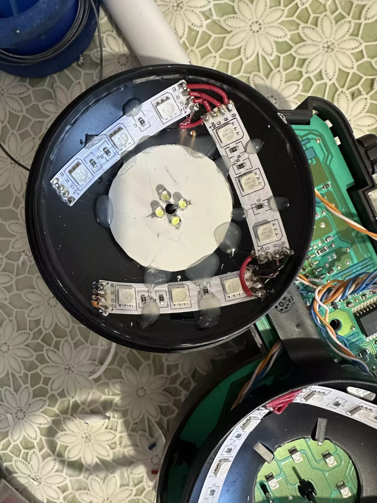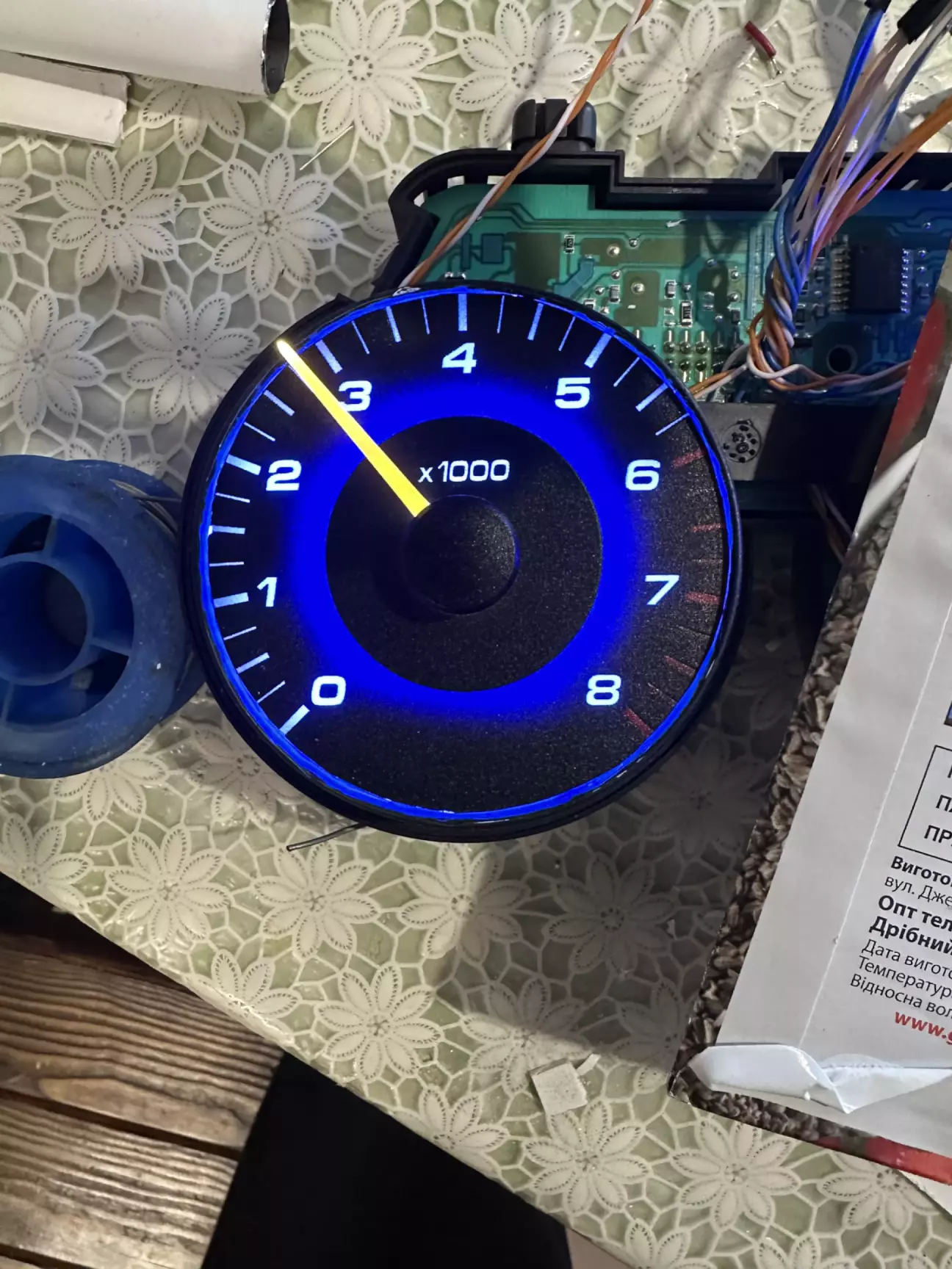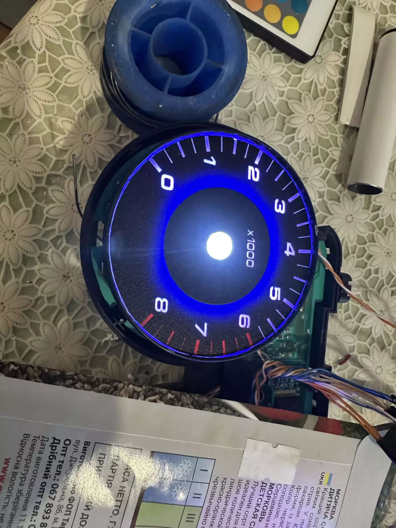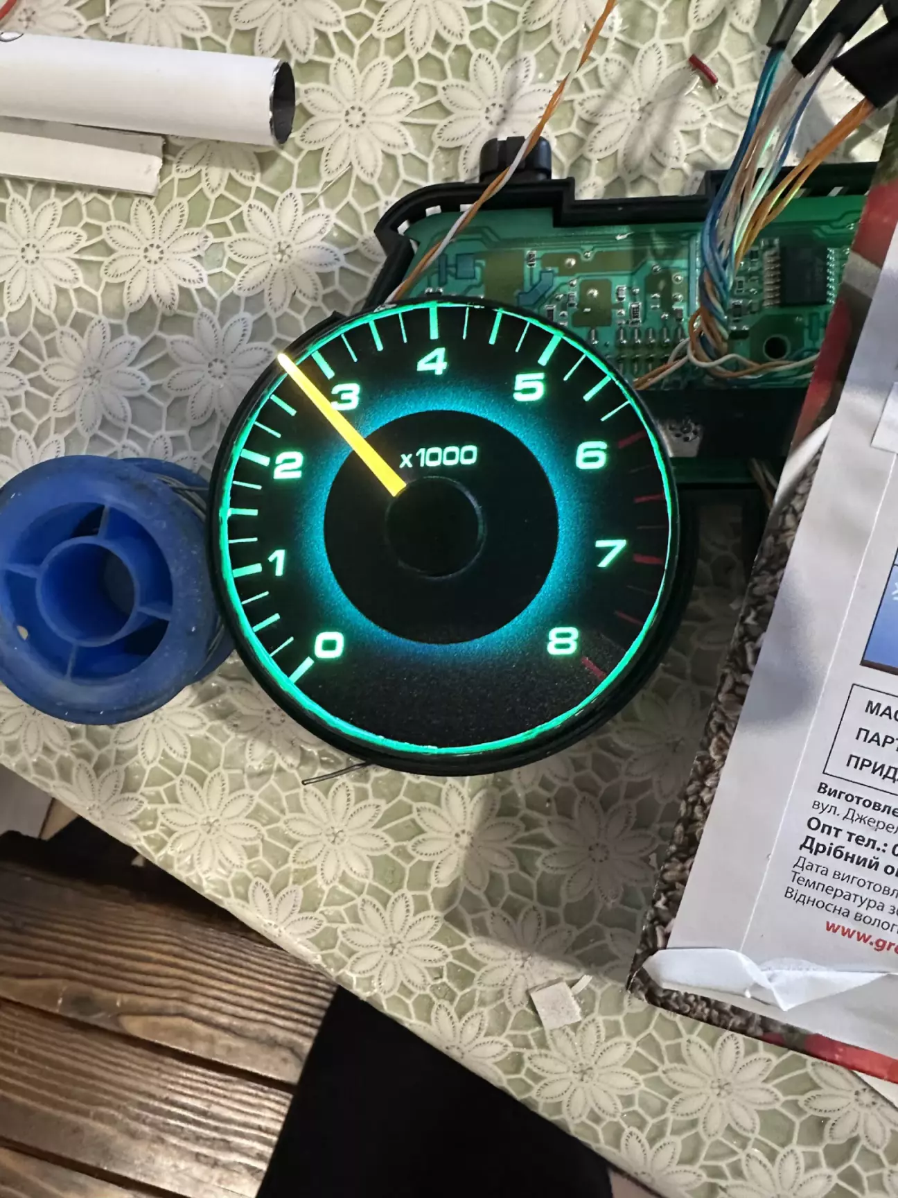 Купив в магазині RGB стрічку з пультом керування для підсвічування шкал і насипом світлодіодів для підсвічування стрілок. Стрілки купив з мерседесу