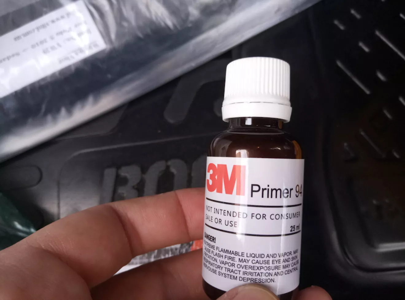 Процесс простой и понятный, сначала положил ветровики на солнце для прогрева двухстороннего скотча на них потом, протер плоскость поклейки на рамке дверей от грязи, дальше обезжирил растворителем, дал высохнуть, нанес тонким слоем праймер и через 5 мин начал клеить ветровики. Главное не спешить и ровно клеить, ).