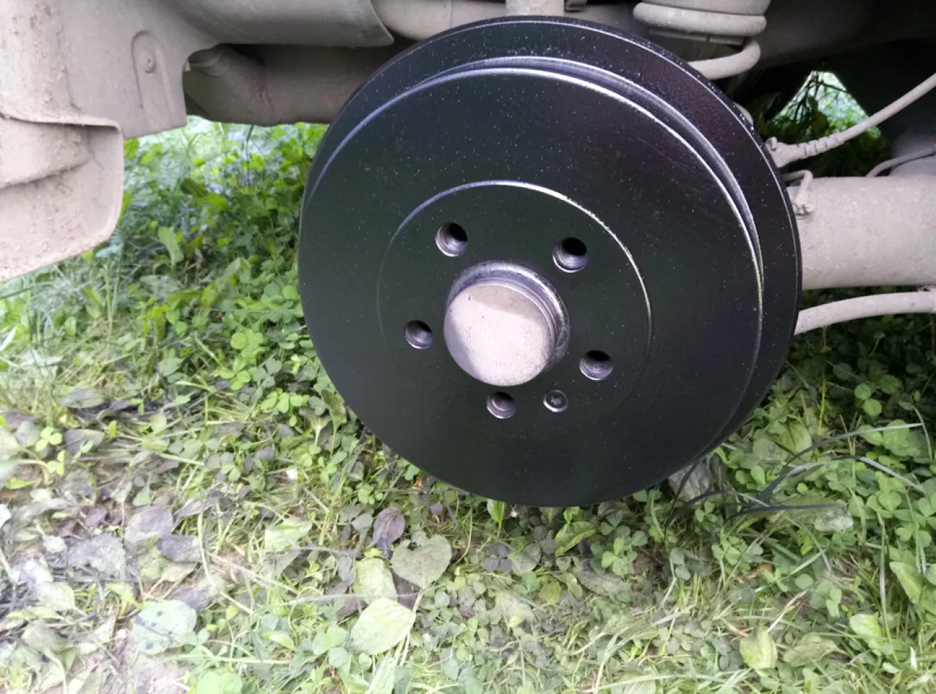 При возрасте машины 4 года задние тормозные барабаны стали выглядеть не очень хорошо, особенно это заметно при таких дисках как у меня (когда видно большую часть барабана). Подождал хорошую погоду, снял колесо, зачистил щеткой по металлу, обезжирил, покрасил черной матовой краской, красил не сколькими слоями — думаю ржавчина больше не побеспокоит и не будет портить внешний вид машинки).