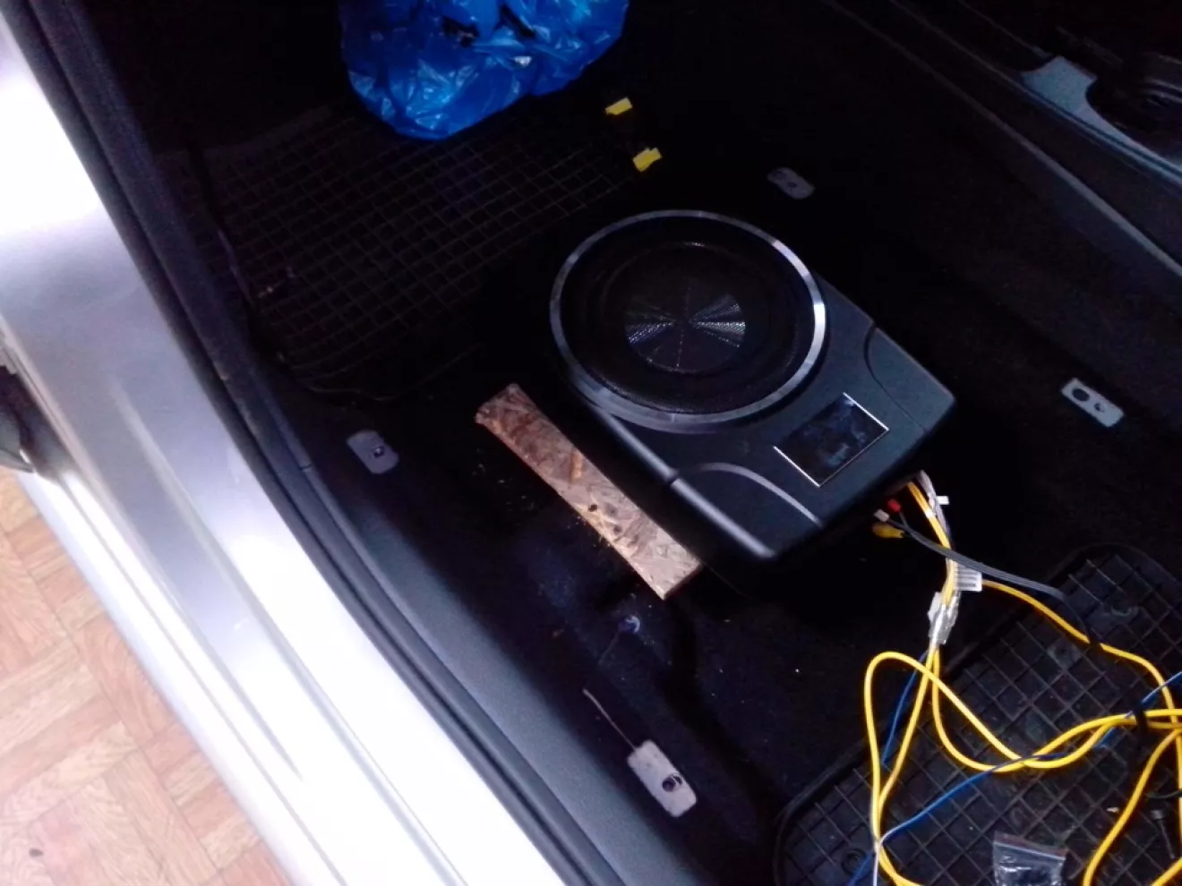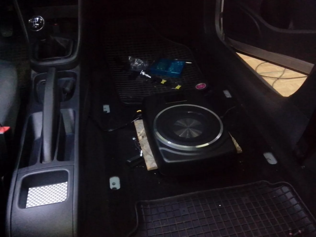 Штатный звук в Поло слабенький ни низов, ни объемности и с этим нужно бороться. Начать модернизацию я решил с усиления низов путем монтажа активного сабвуфера в салон. Почему в салон и почему не пассивный в правильной коробке? В багажник не поставил так как пространство иногда приходиться использовать на полную, и большая коробка будет совсем не в тему, а активный четко занял место под сиденьем переднего пассажира, и совсем не заметен.
