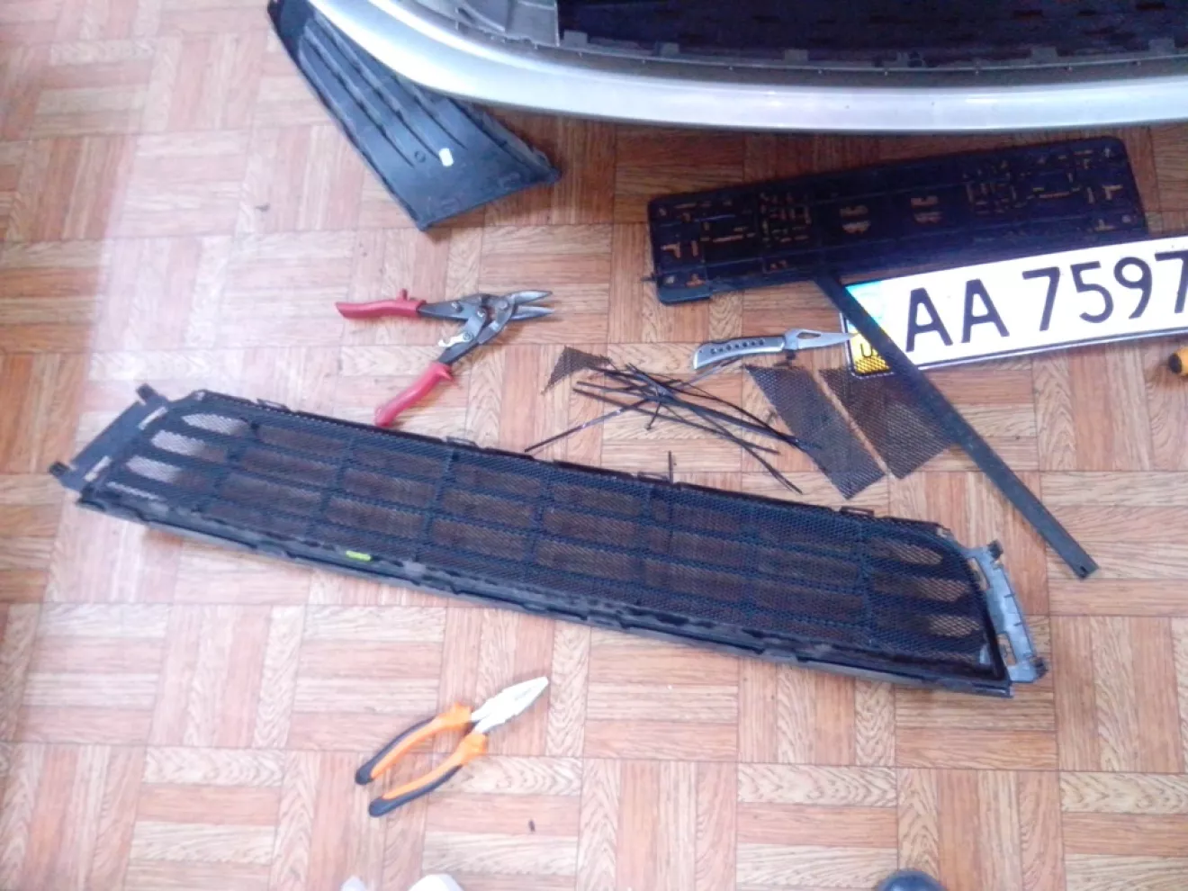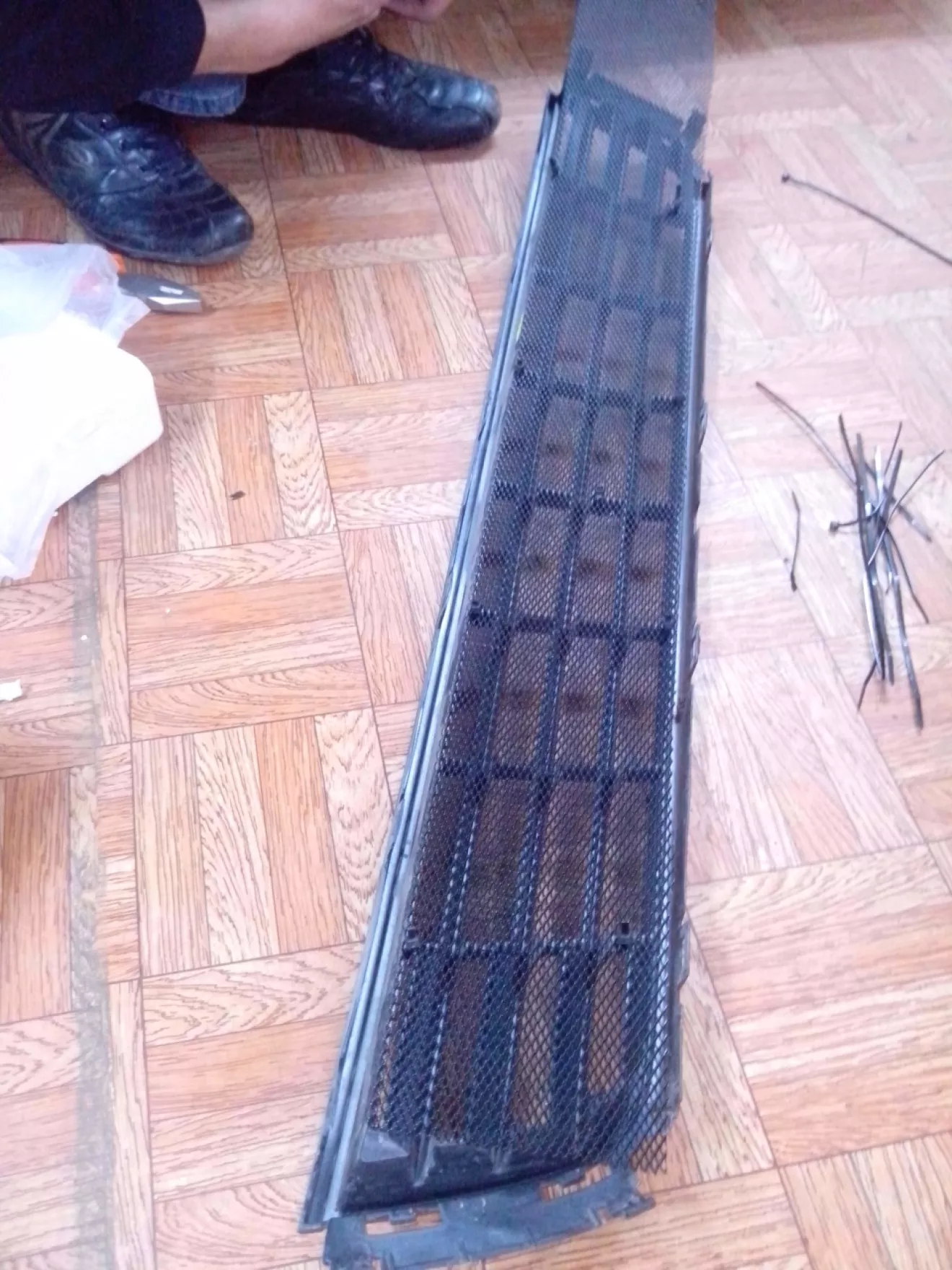 Купив сетку маленького сечения и черного цвета я долго катал ее в багажнике — то руки не доходили то просто один раз попробовав снять побоялся что поломаю крепление. Но благодаря моему хорошему другу тюнингоману ps600 сетка была поставлена на свое новое место. Я думаю не стоит описывать порядок снятия решетки, так как он описан не один десяток раз. Главное пластмассовые защелки не поломать (у меня все остались на месте). Для крепления использовали стяжки около 12 шт., в результате сетка села как на свое место и не люфтит. Стяжки видны только когда на них смотреть с очень близкого расстояния. Фото в студию!)))