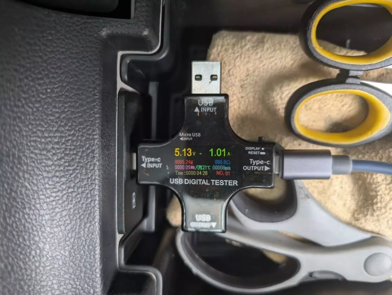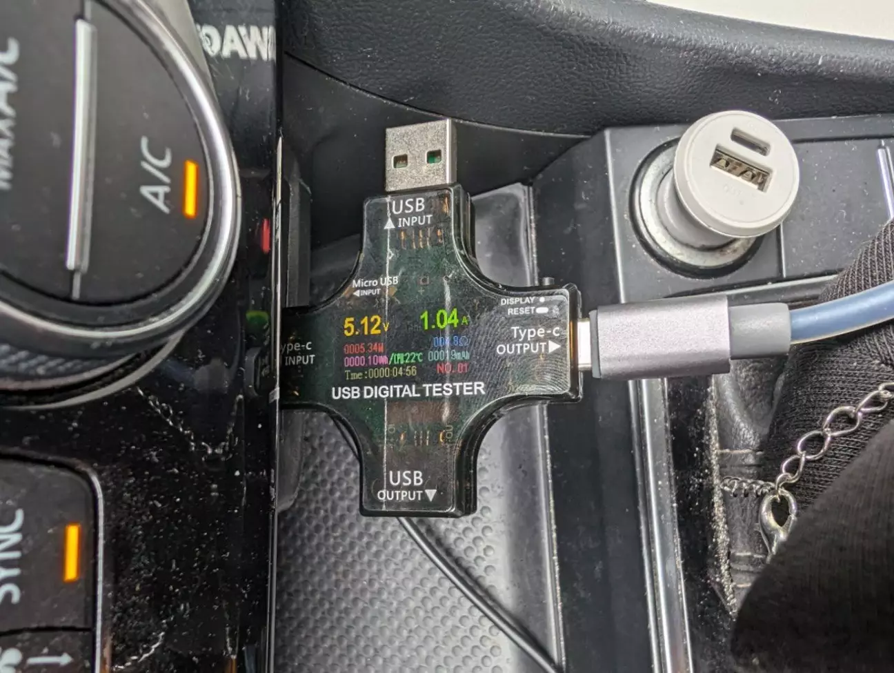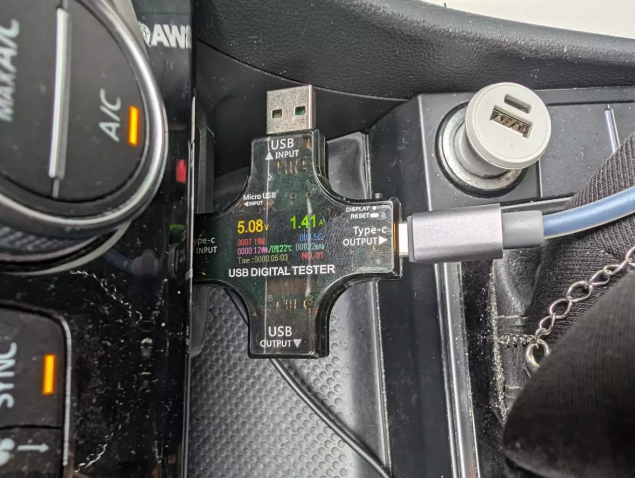 Слово за слово, заговорили з хлопцями про цей додатковий USB, почитав записи, бачу, що всі скаржаться на одну проблему - Type-C під блоком клімату (єдині USB порти в машині, по суті) - не заряджають нормально телефон. Вірніше от взагалі не заряджають. @ivmulder заміряв тестером потужність на виході - і отримав аж цілих 2,16 Вт. В той час як у підлокітнику (читайте - у прикурювачі, бо проводка бере живлення саме там) - 9 Вт. Проте в нього USB Type-A