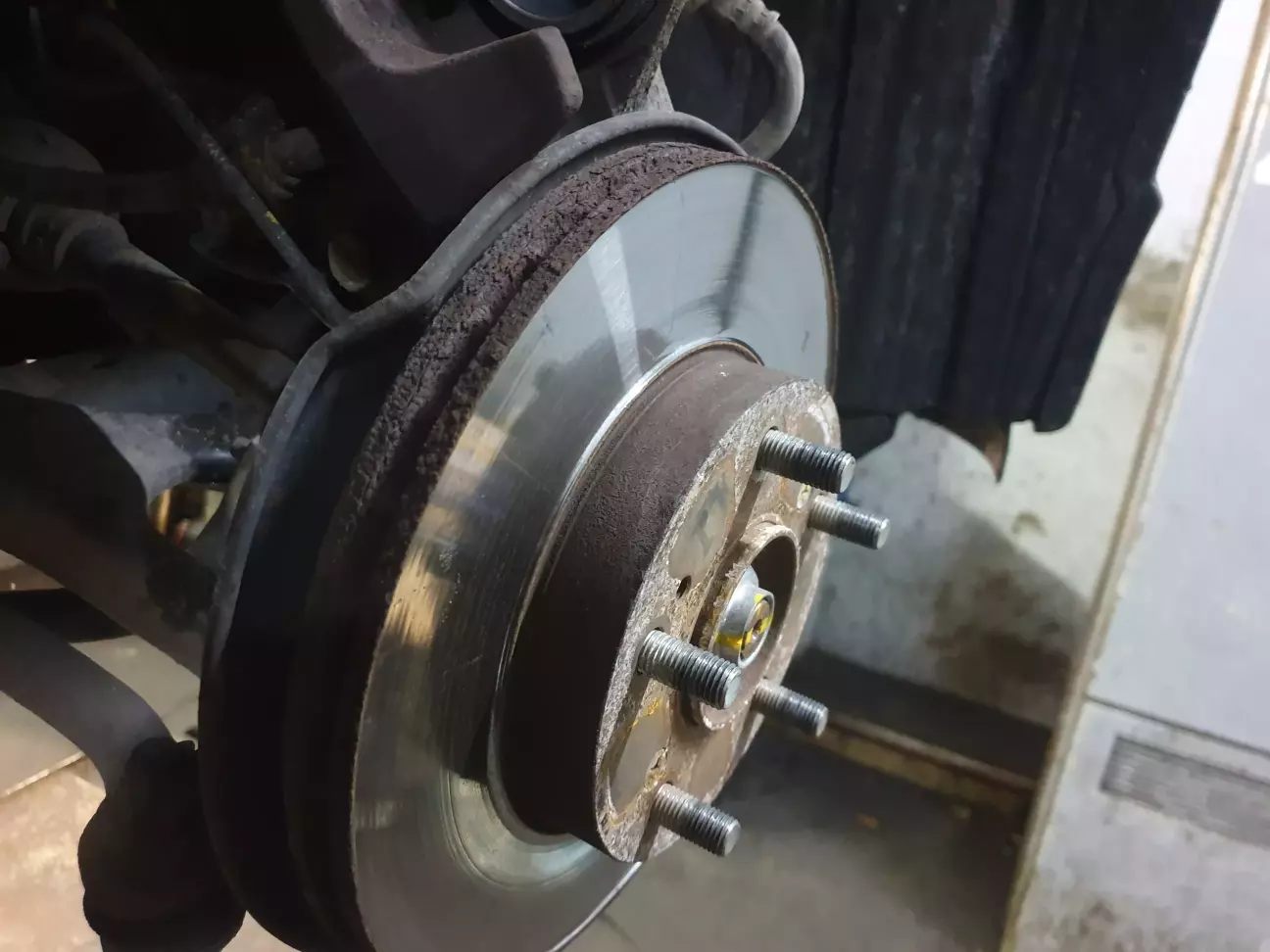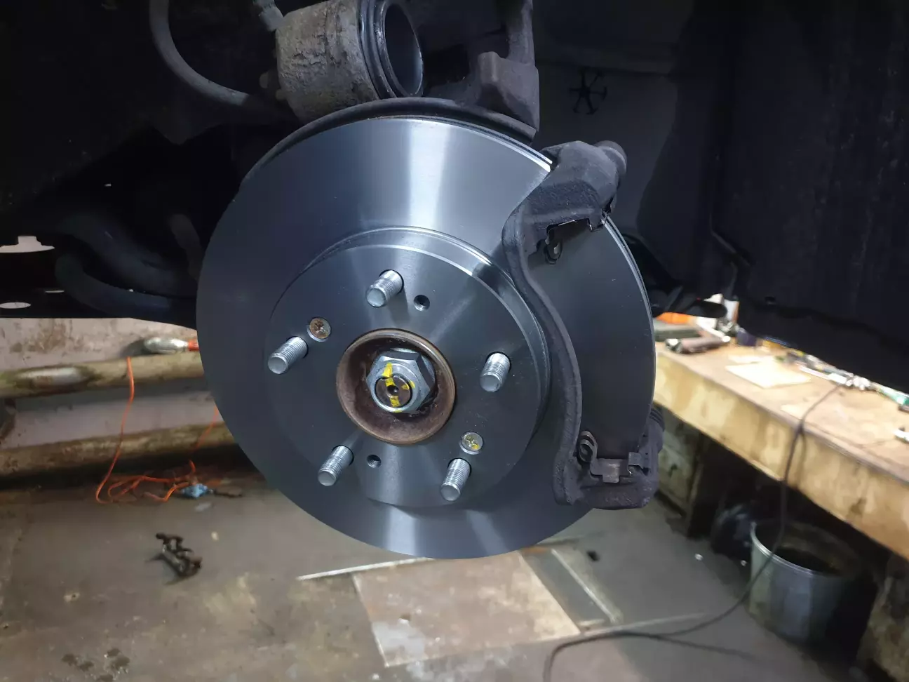 Гальмівні диски були вже достатньо зношені щоб задуматися про заміну. Головна проблема була що гальмівна система швидко перегрівалася, особливо виділялося при спусках з гори, коли колодки не відпускало, та при маневрах на трасі. Давно треба було поміняти.