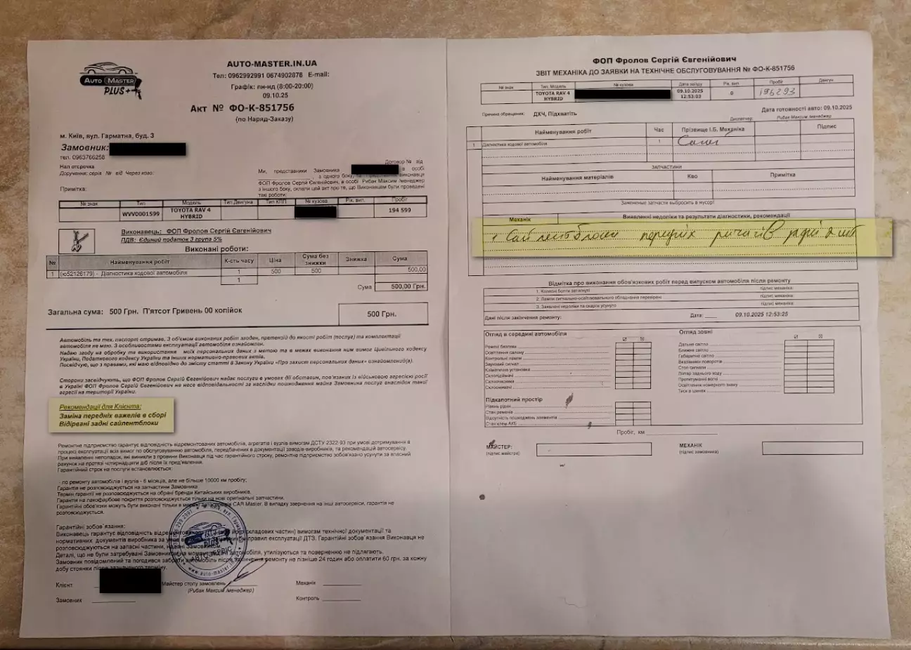 Після діагностики виявили пошкодження лівого сайлентблоку переднього важеля.