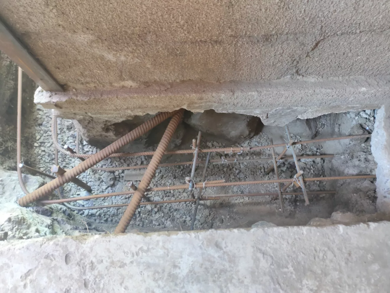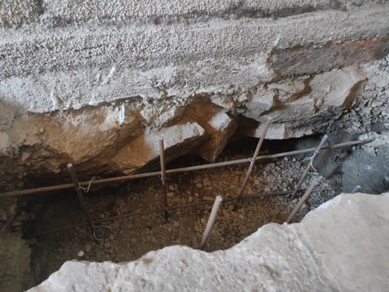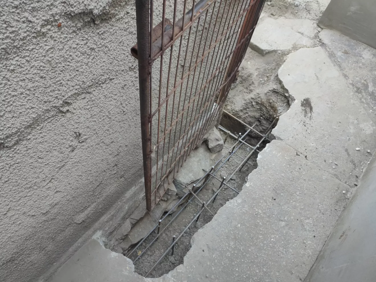 Так как фундамент гаража проседал было принято решение укрепить фундамент путем подрытия и подливки бетона марки М300 под фундамент.