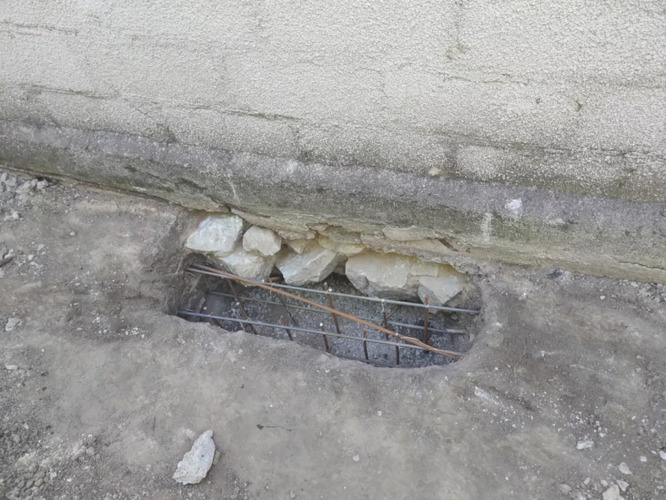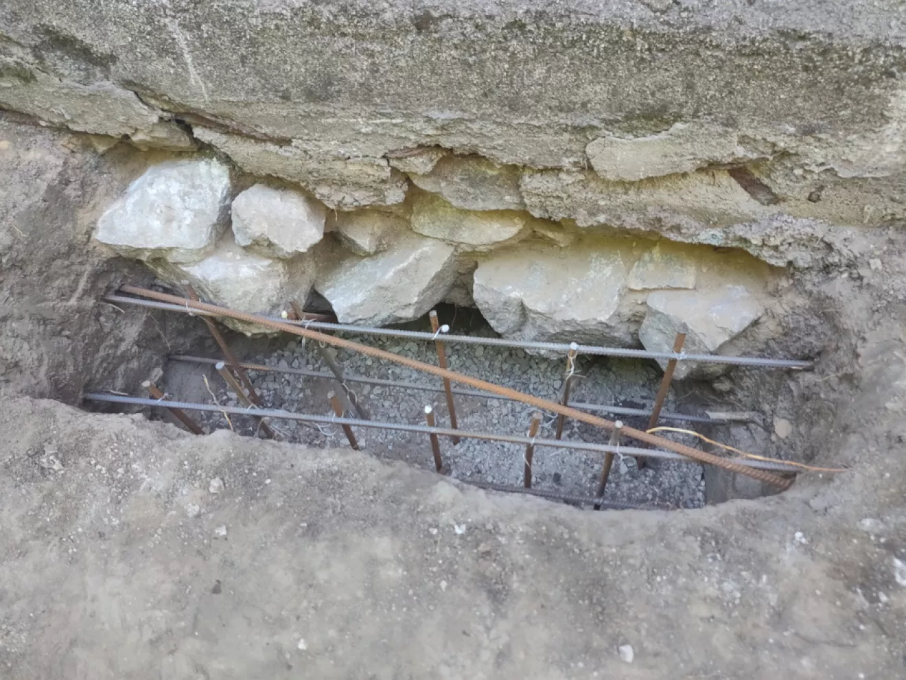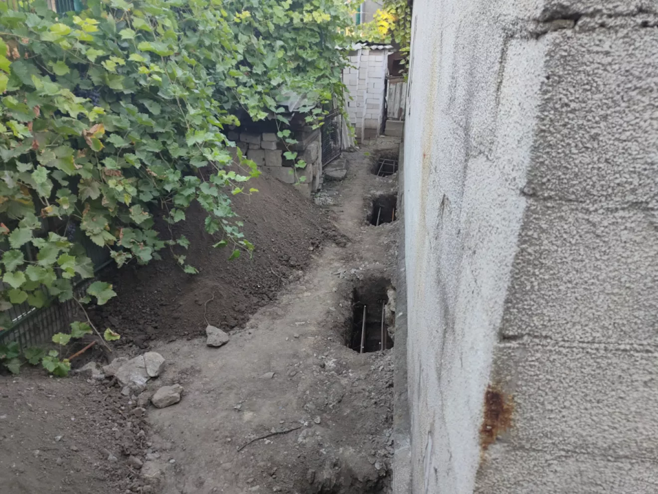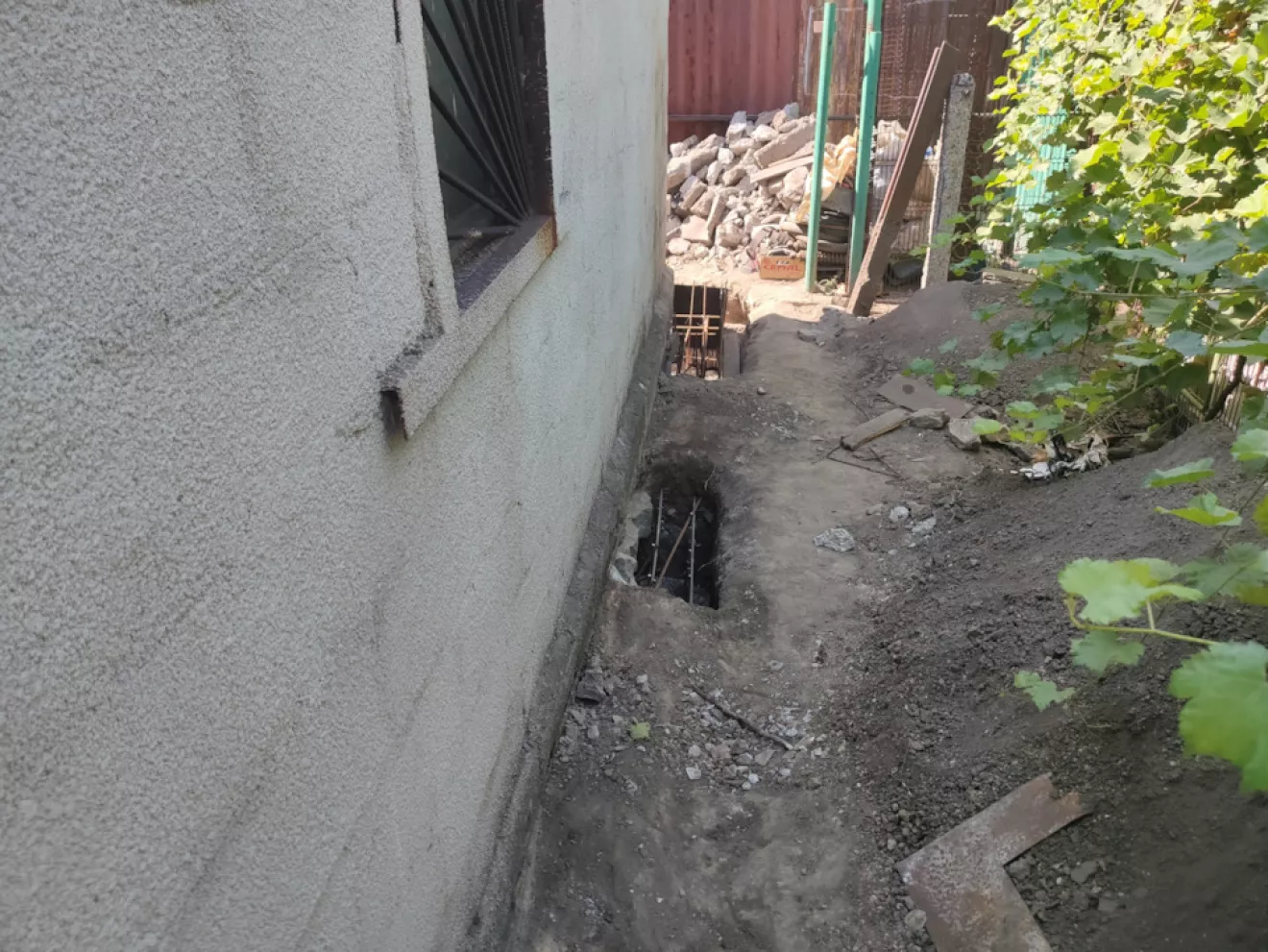 В первую очередь были подкопаны все углы и вдоль продольных стен изнутри и снаружи встречающиеся под фундаментом ямы для заливки бетона.