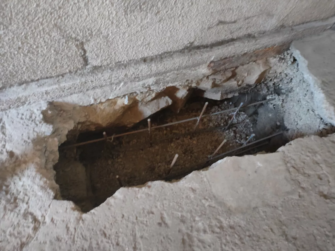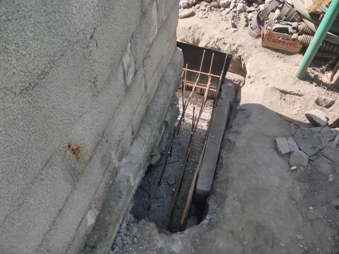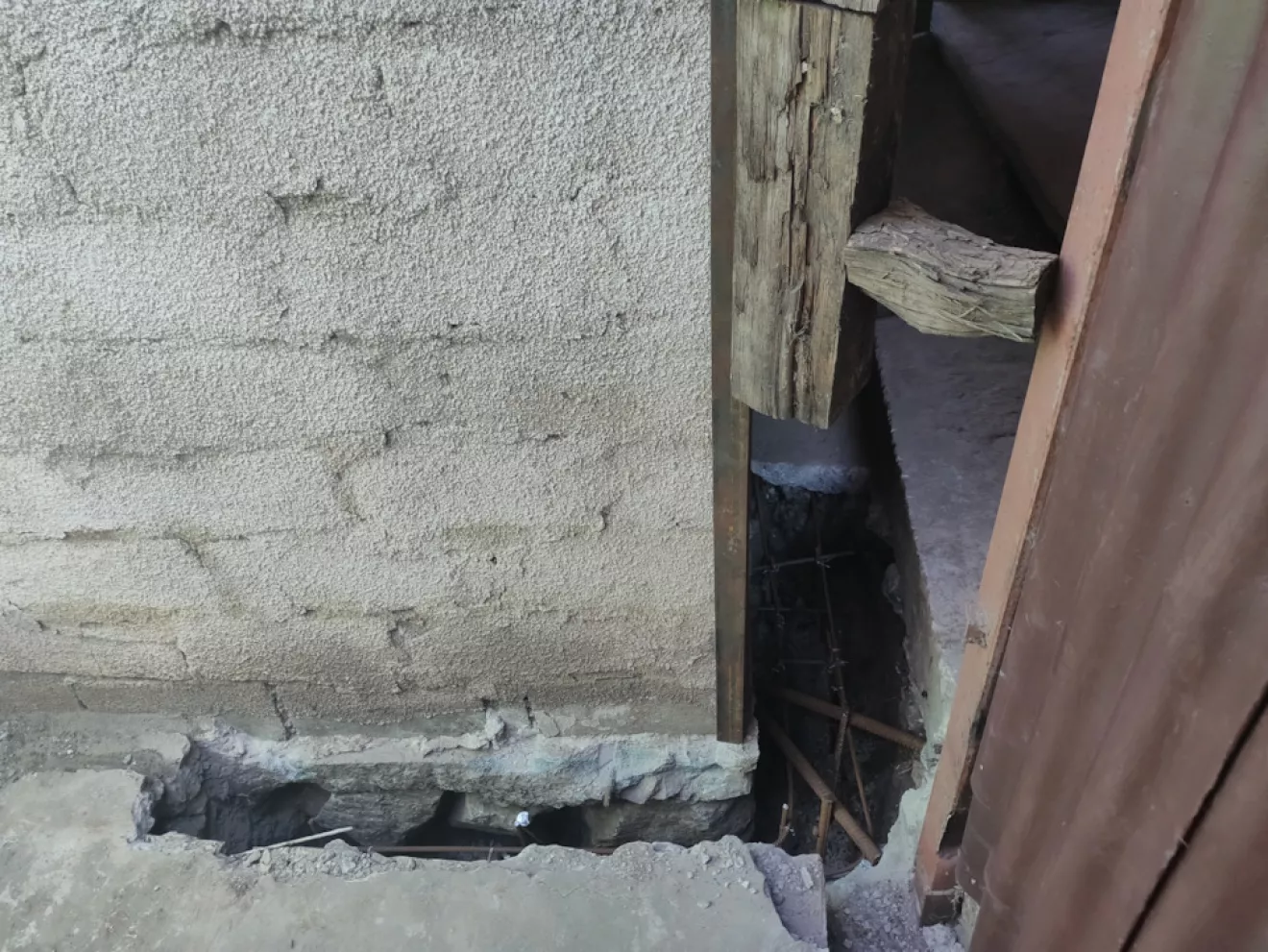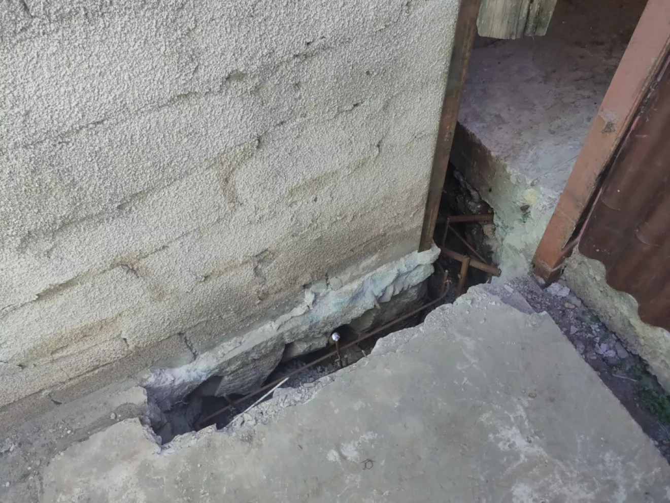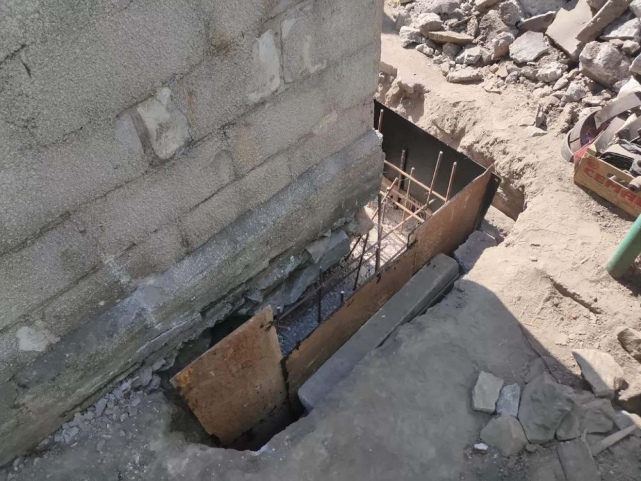 В первую очередь были подкопаны все углы и вдоль продольных стен изнутри и снаружи встречающиеся под фундаментом ямы для заливки бетона.
