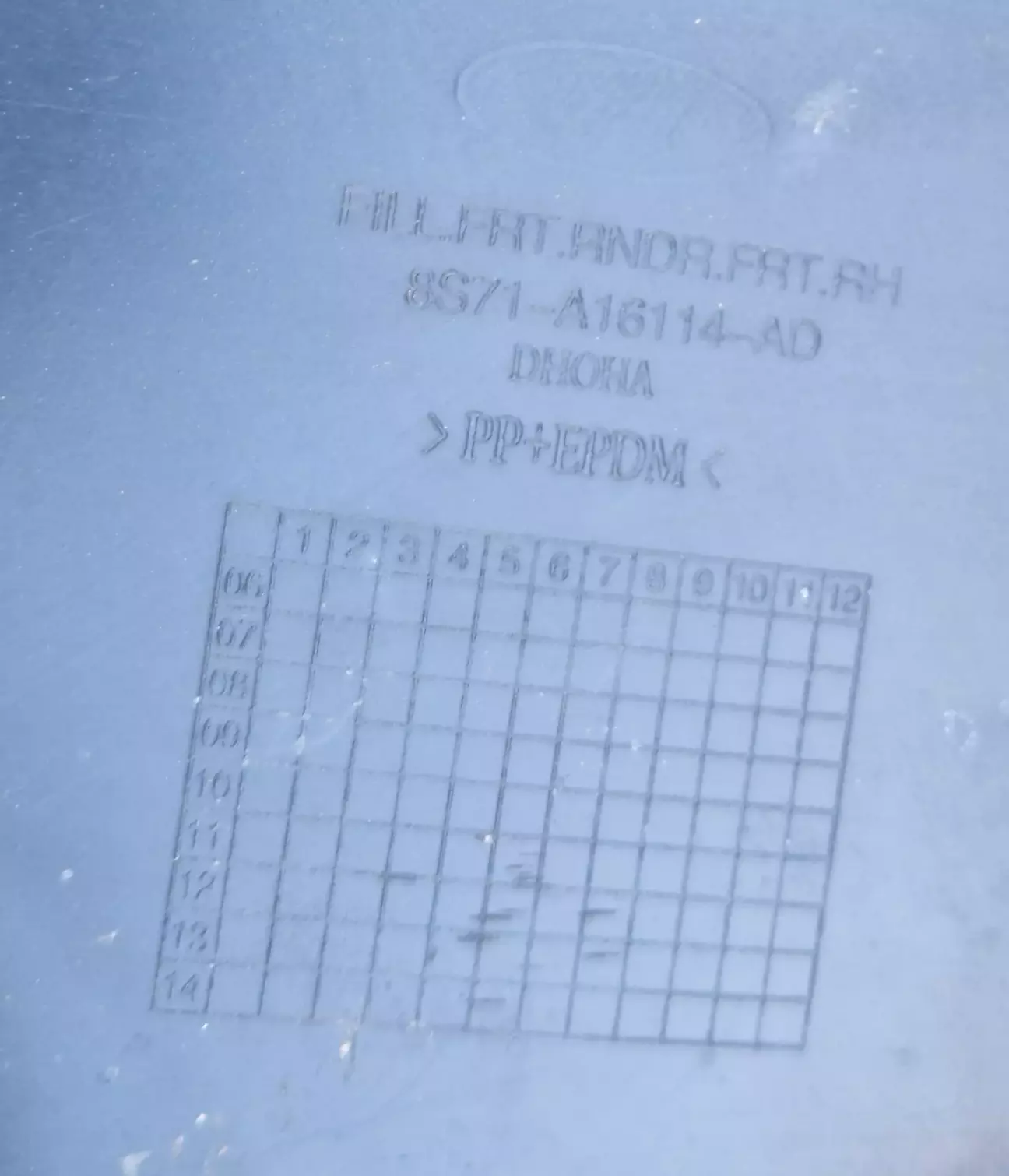 Інформація на новому підкрилку про матеріал з якого він зроблений, та типу виробляли "оригінальні" ( логотип ford трохи не сформували 😄):