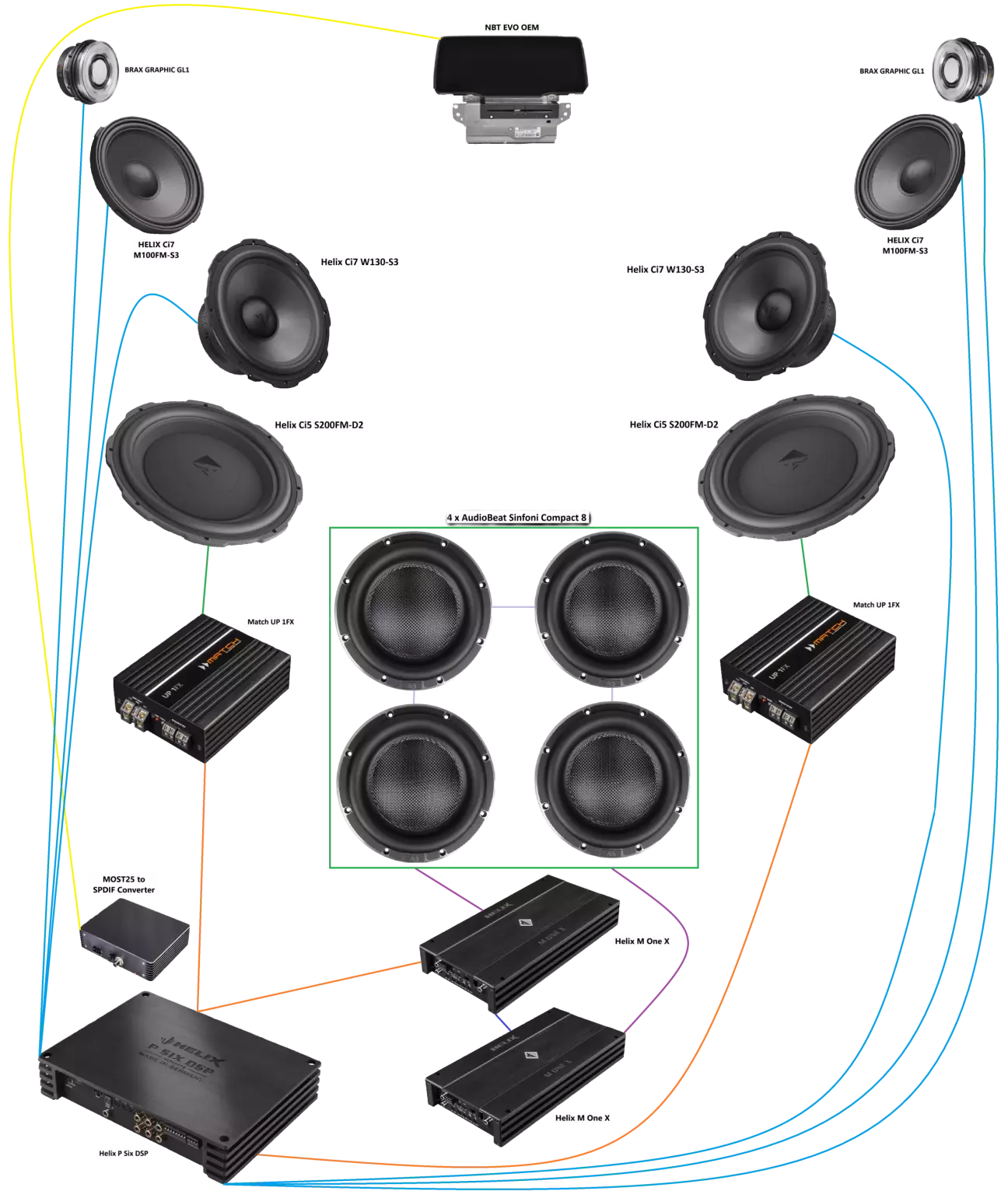 СЧ та ВЧ динаміки у мене однієї серії - Helix Ci7. Це - самий топ, що може запропонувати Helix. І, якщо вам захочеться чогось кращого у рамках німецької компанії Audiotec Fischer (нагадаю, що Helix є одним із її суббрендів), то дорога лише одна - до Brax. Я зараз не буду закидати вас купою тестів чи відгуків, які підтверджують, що Brax - це один із топів, які є світі автозвуку. Скажу лише одне, що для їх придбання треба мати ну дуже товстий гаманець.