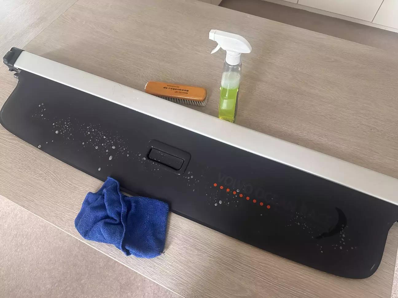 Знімав шторку щоб транспортувати колеса до гаражу, скориставшись моментом що вона знята і вже в квартирі вирішив почистити її та наніс кондиціонер, чистенька та пахуча.