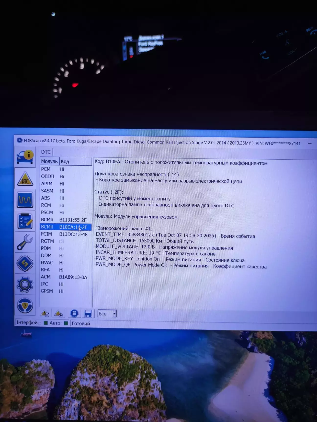 Підключивши сканер, бачу що авто видало помилку. Попитавши у експертів, висновок був що або ж Тен не працює, або BCM не підтримує його.