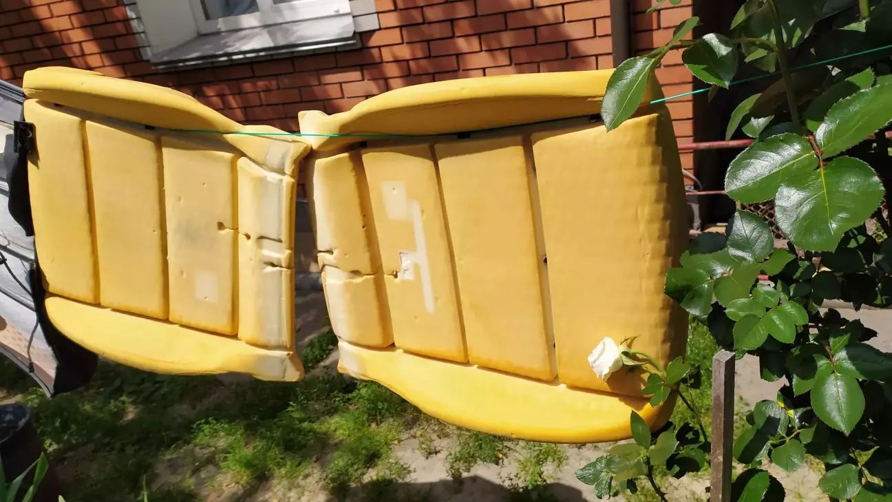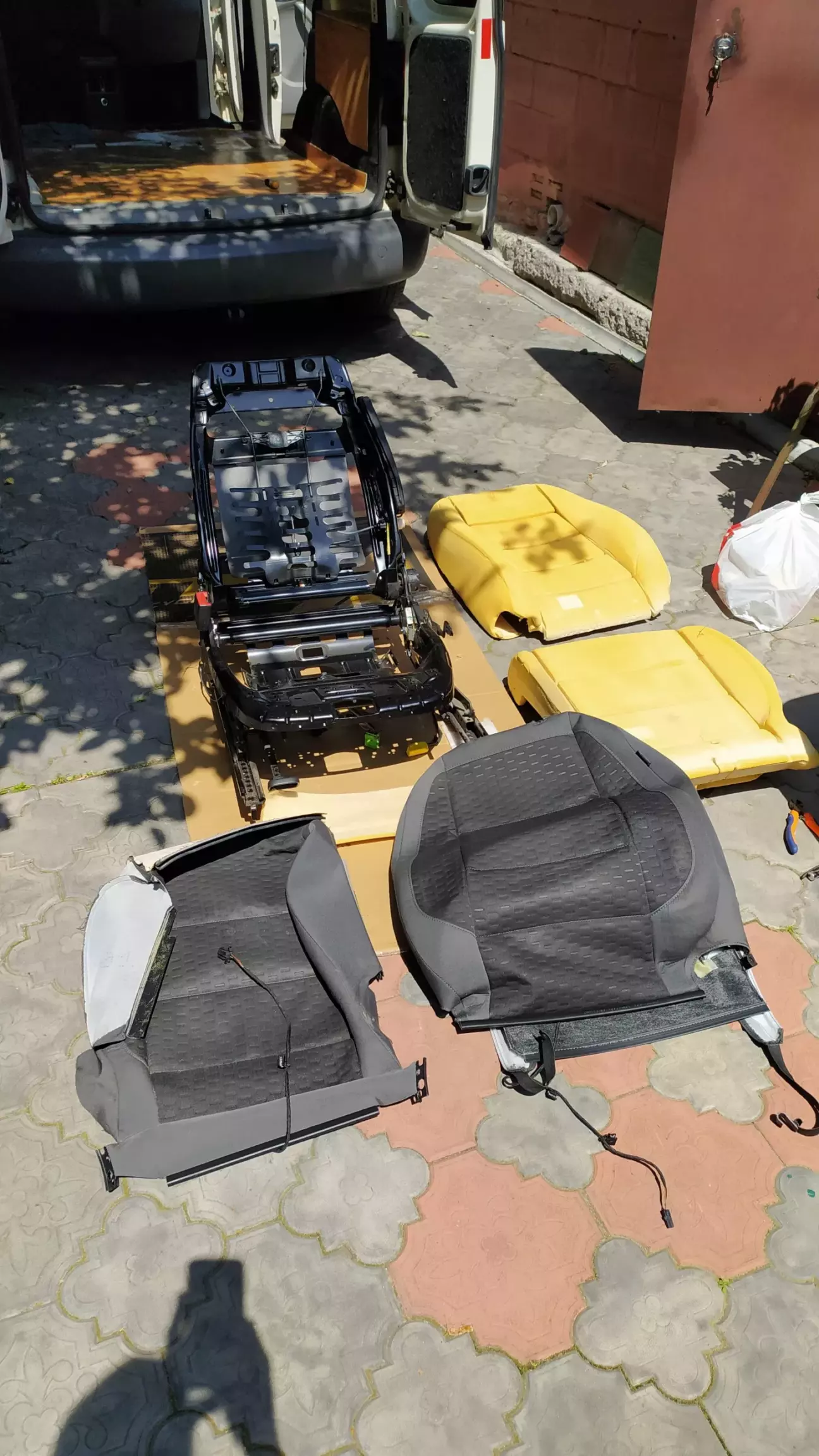 Ну ось і дійшла черга до передніх сидінь, але... Субота була останнім спекотним днем і вони не встигли висохнути повністю, особливо поролон і сохнув він ще 3 дні. Так і їздив на розібраних сидіннях, накривши плівкою
