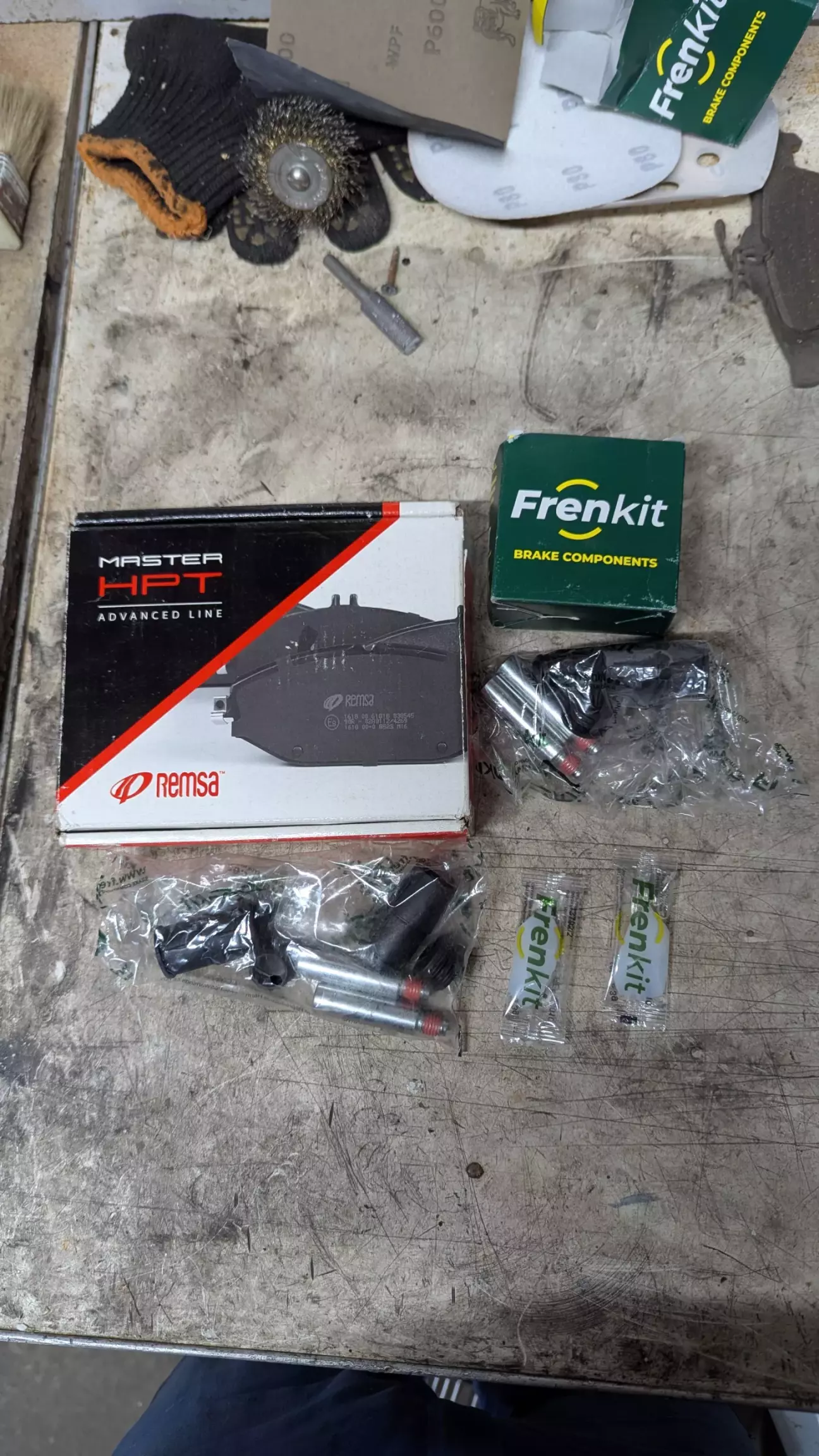 С момента покупки у меня не было ручника так как тросам была попа и они были вообще скинуть с центрального тросика ручника, задние колодки были нормальные но сгнили пружинки те что прижимают к супорту чтобы не торохтели, заодно уже решил и направляющие заменить и по ходу действий решил немного зачистить и покрасить.