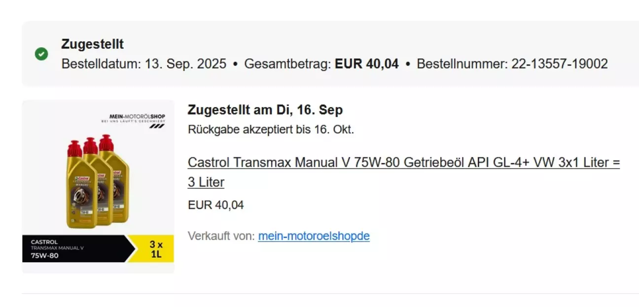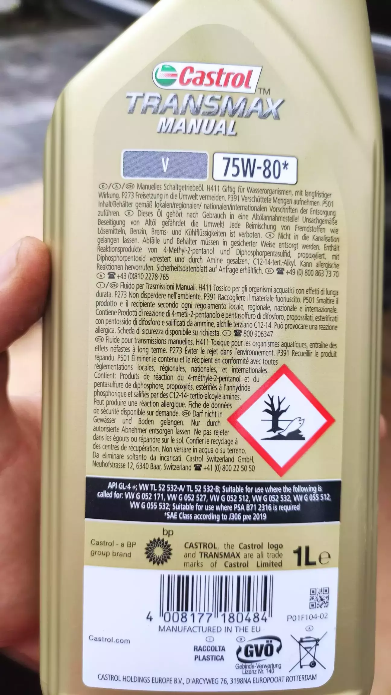 Замінивши оливу в механічній частині коробки Гольфа, батько й своєму Тігуану захотів поміняти. Роки і кілометраж тільки підкріплюють раціональністю це рішення. Питань немає, почав гуглили що до чого. На механіку Тіга 2011го року має йти в оригіналі G052171A2, яке вже знято з виробництва. Ніби замість неї має бути тепер G052527A2, але ціна понад 60 євро за 1 л ніби натякає подивитися в бік адекватних альтернатив. Вибирали між Лікві Молі 5300 та Кастролом Transmax Manual V 75W-80. Батько вирішив зупинитися на останньому і за 40 євро з доставкою ми отримали 3х1л (треба ж більше 2л заливати, тому тільки так).