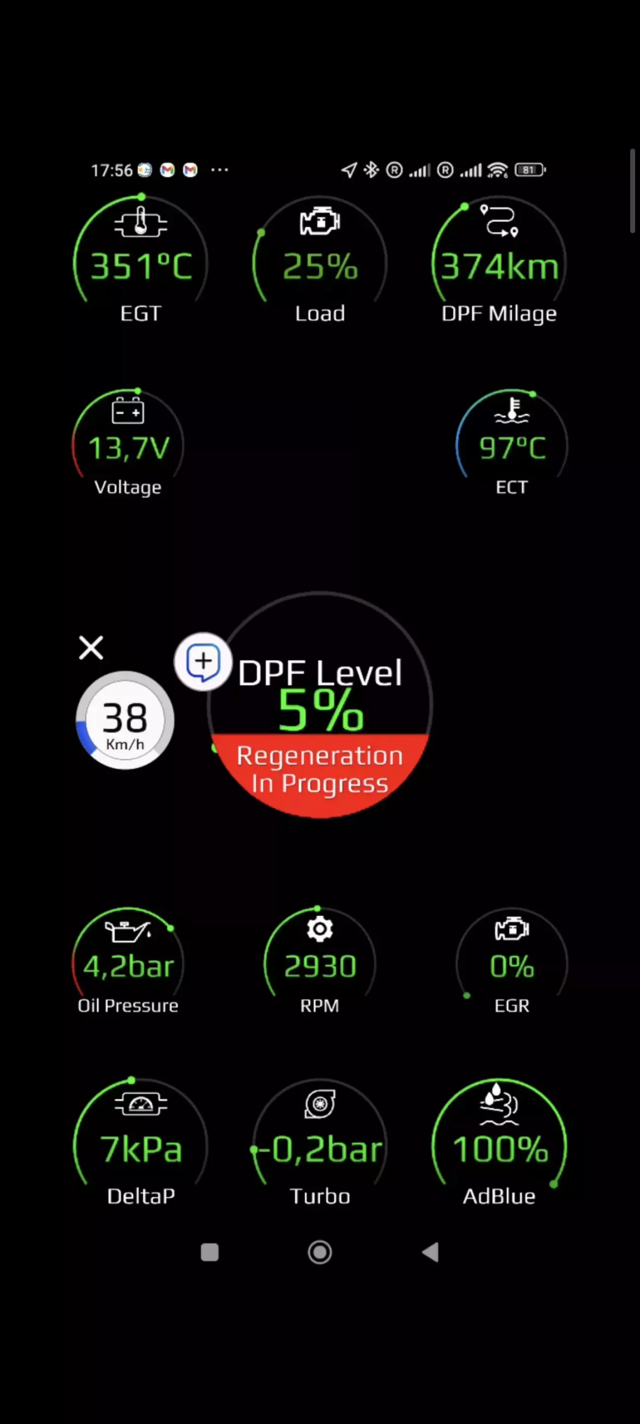 Прожиги фильтра DPF проходят в диапазоне 320-370 км пробега, изучая форумы сделал вывод что для второй инсигнии это нормальный показатель, у машинок с пробегами до 80к максимальные диапазон прожига до 500км... Если учесть что Белка имеет 200к то 370км это нормально. Загрузил данные OPL monitor-а в чат ГПТ , его диагонз: