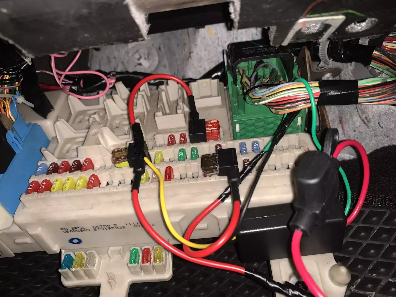 Зупинився на останньому варіанті через простоту. Однак для його реалізації довелося замінити LED-лампи в дальньому світлі на галогенові та відключити шторки в лінзах. Загалом, за містом уночі їжджу не так часто, тому був готовий пожертвувати цим. Підключав за інструкцією @roha012 , взяв той самий модуль та розгалуджувачі, про які написано у записі, тому дублювати не буду. Однак підключав так, щоб ходові вогні відключалися тоді, коли вмикаються габарити. Для цього підключив на запобіжник F81, який відповідає за ліві габарити. Також є запобіжник F46, який відповідає за праві габарити та підсвітку номера - вирішив не навантажувати цю лінію й узяв ліву сторону, на якій лише габарити.