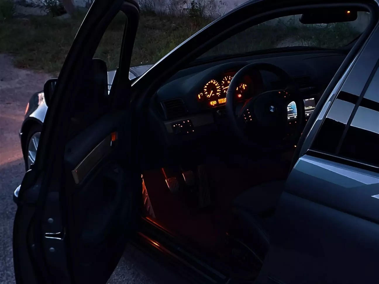 На всіх фото дімером бмв зроблена максимальна яскравість, щоб якось його можна було сфотографувати. Після невеликого тесту, прийшли до висновку, що спереду достатньо одного ембієнт діода. Від того що побачите на фото, стало в 2 рази тускліше і стало прям ідеально. Дуже ненав'язливо.