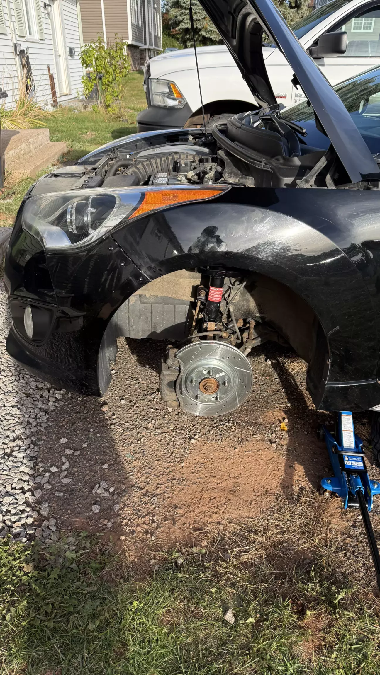 Також замінив диски та колодки, Power Stop Z23. Дістався комплект майже задарма, Амазон підкинув халяву)) (140CAD за слотовані+перфоровані диски та комплект колодок). Пластини, які ставляться між колодкою та скобою, з цього комплекта не підходять. Вони трохи меншого розміру та колодки стають мертво на них. Або ставити старі, або сточувати каркас колодок.
