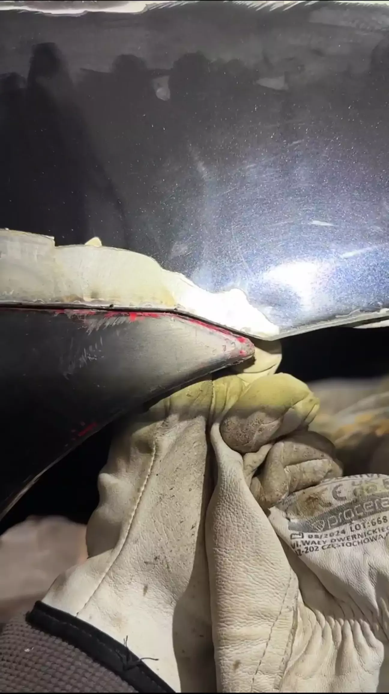 Теж не подобалося як стирчить задня дверка на вулицю, при тому що по всій проймі вона в зазорі і стиках, а на моменті де варене крило, там випирає Зробив розріз, витягнув крило на зовні, потім наклав шинку на зазор і проварив, акурат наростивши великий зазор