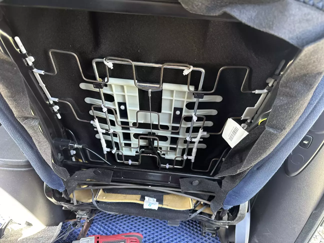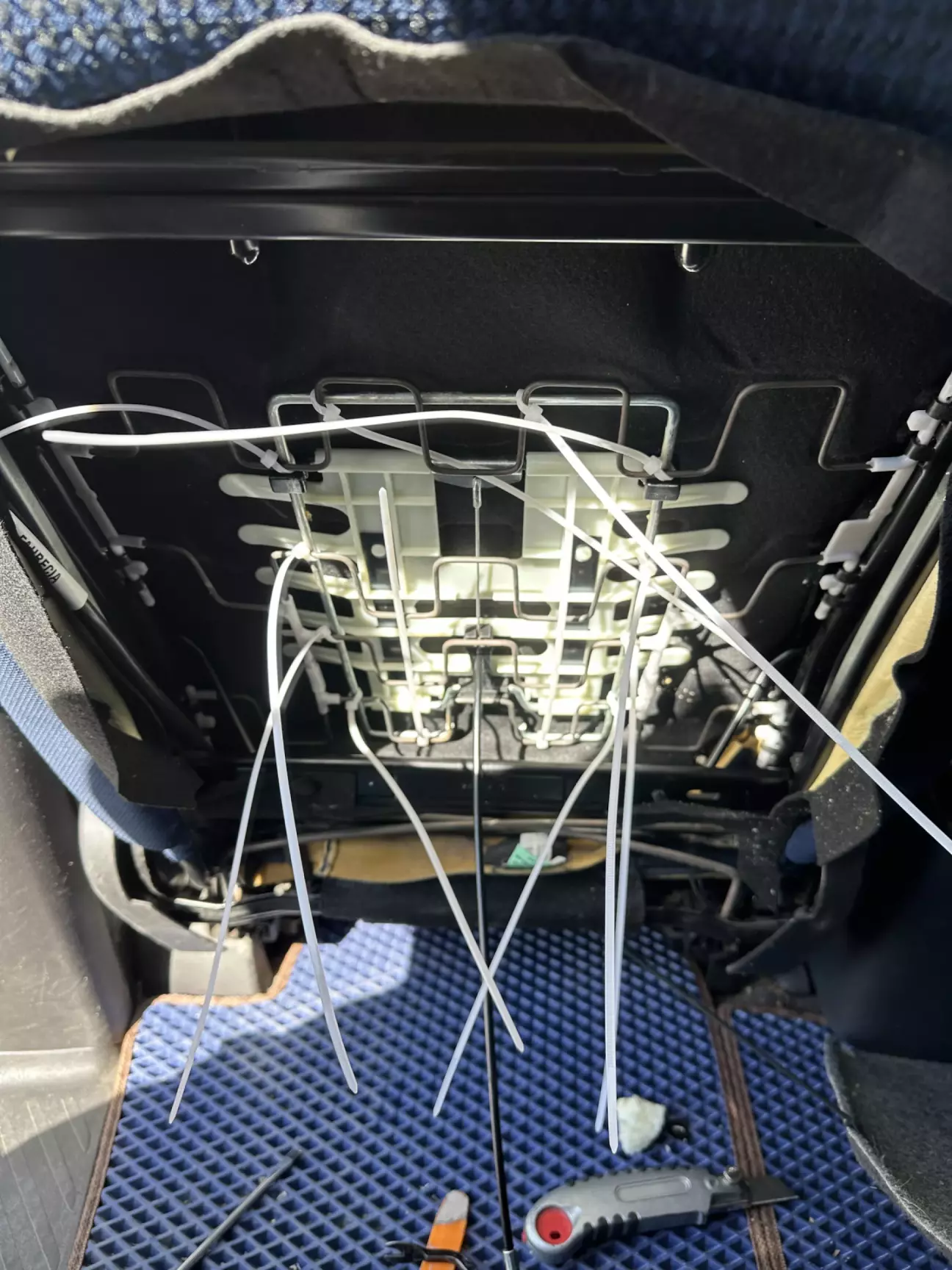 З сидінь треба сняти тільки задні кришки, сам механізм кріпеться стяжками прям за прижиний каркас
