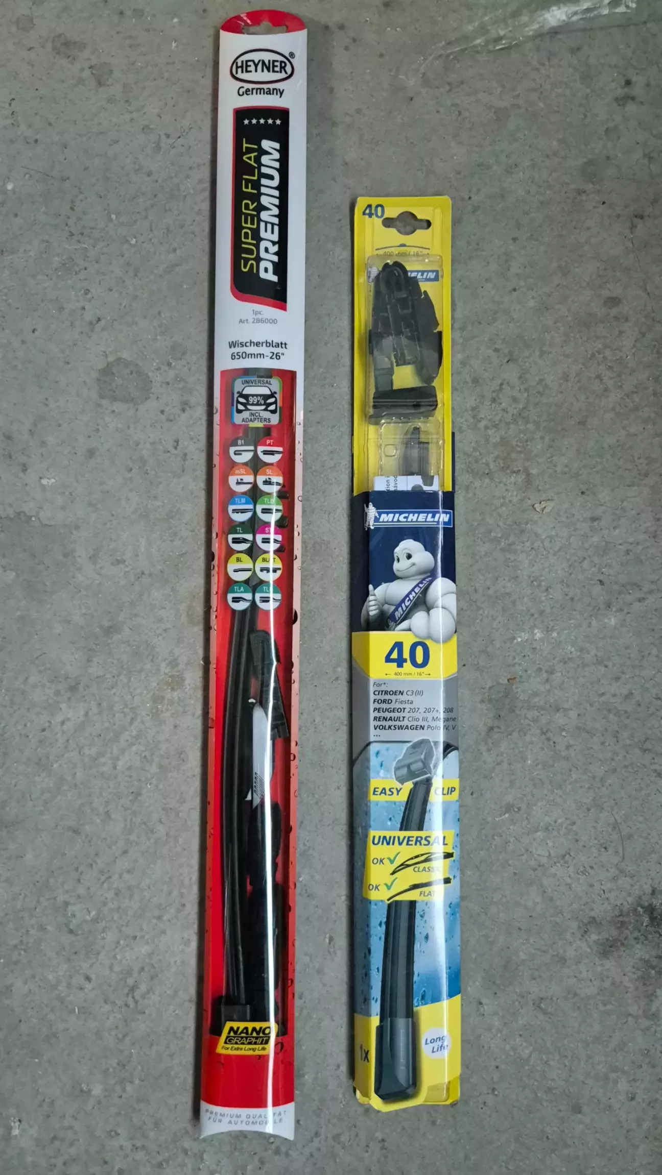 Жодну з них рекомендувати не можу. Heyner тре добре, але кріплення якось не надійно тримається. Michelin кріплення прекрасне, а от витирає з полосками. І це при ширині всього 400! І це один з лідерів світу по гумі. Коротше, мабуть Michelin має мало відношення до тих двірників.
