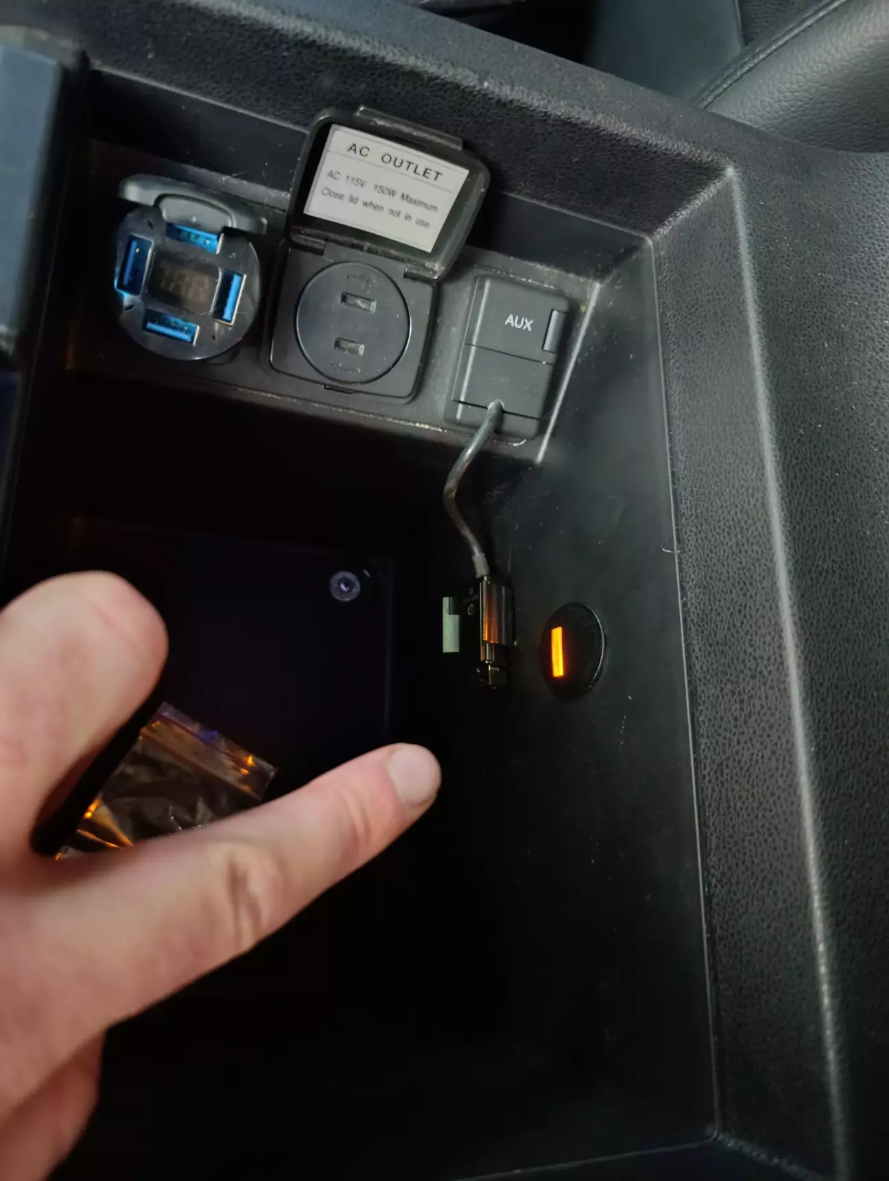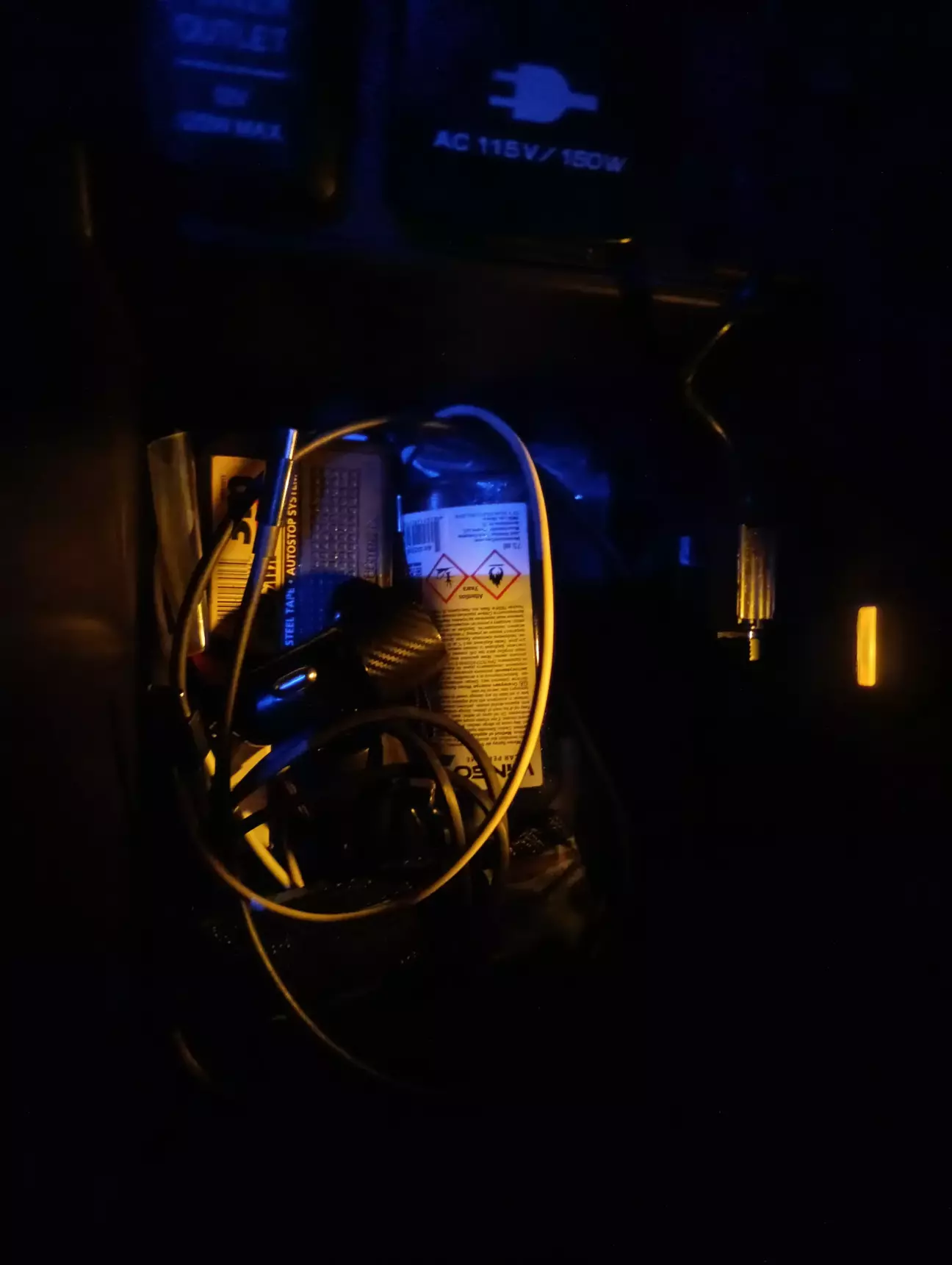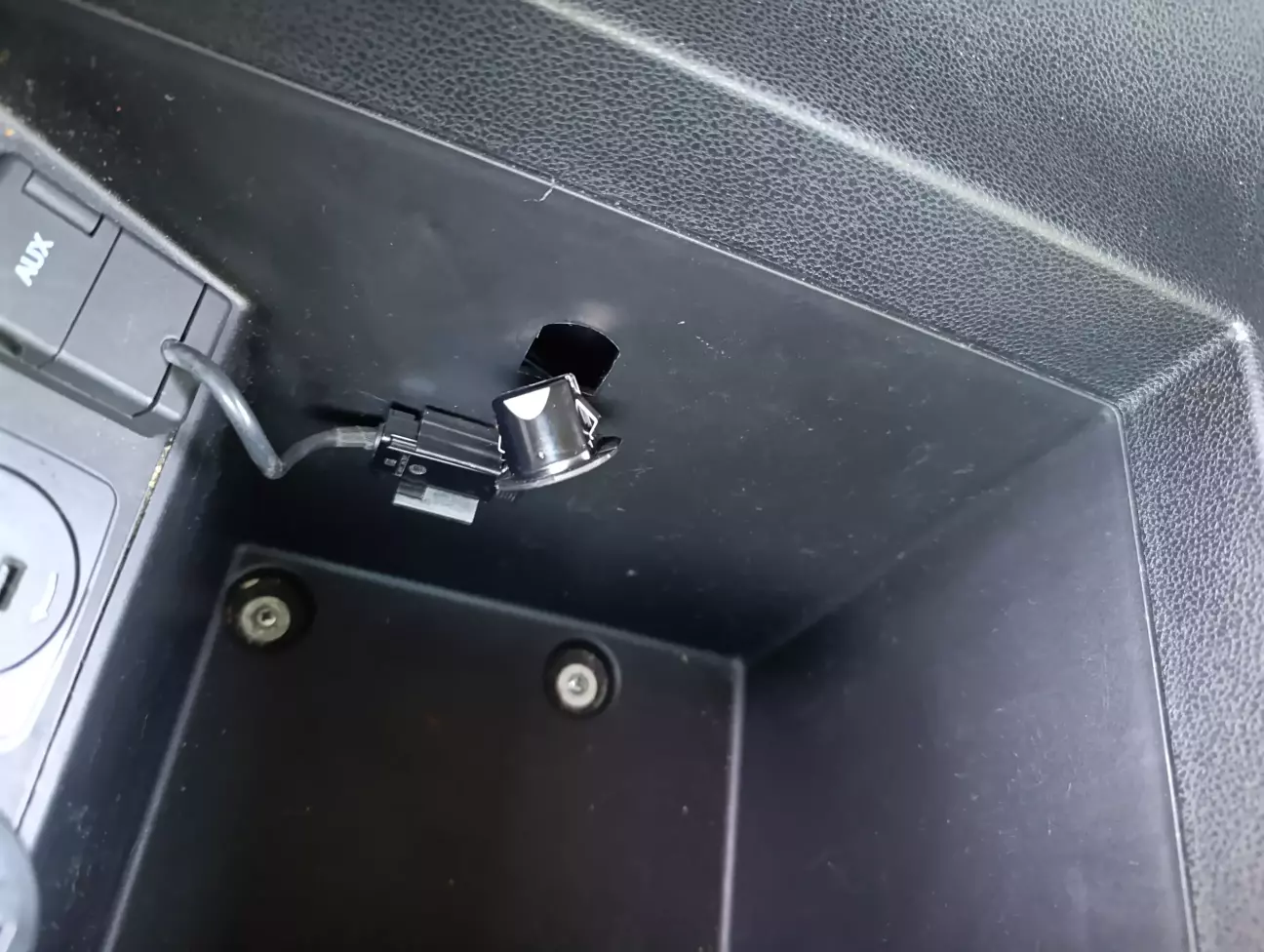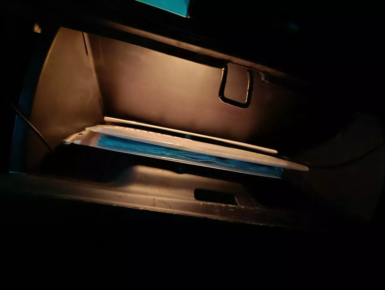 В центральном боксе светит хуже, а вот бардачок уже освещается по полной.