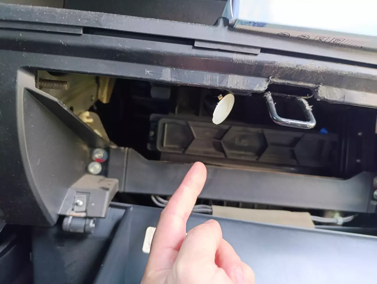 Точно такая же лампочка используется и для освещения бардачка. Это белое пятнышко возле петли бардачка - место ее расположения.