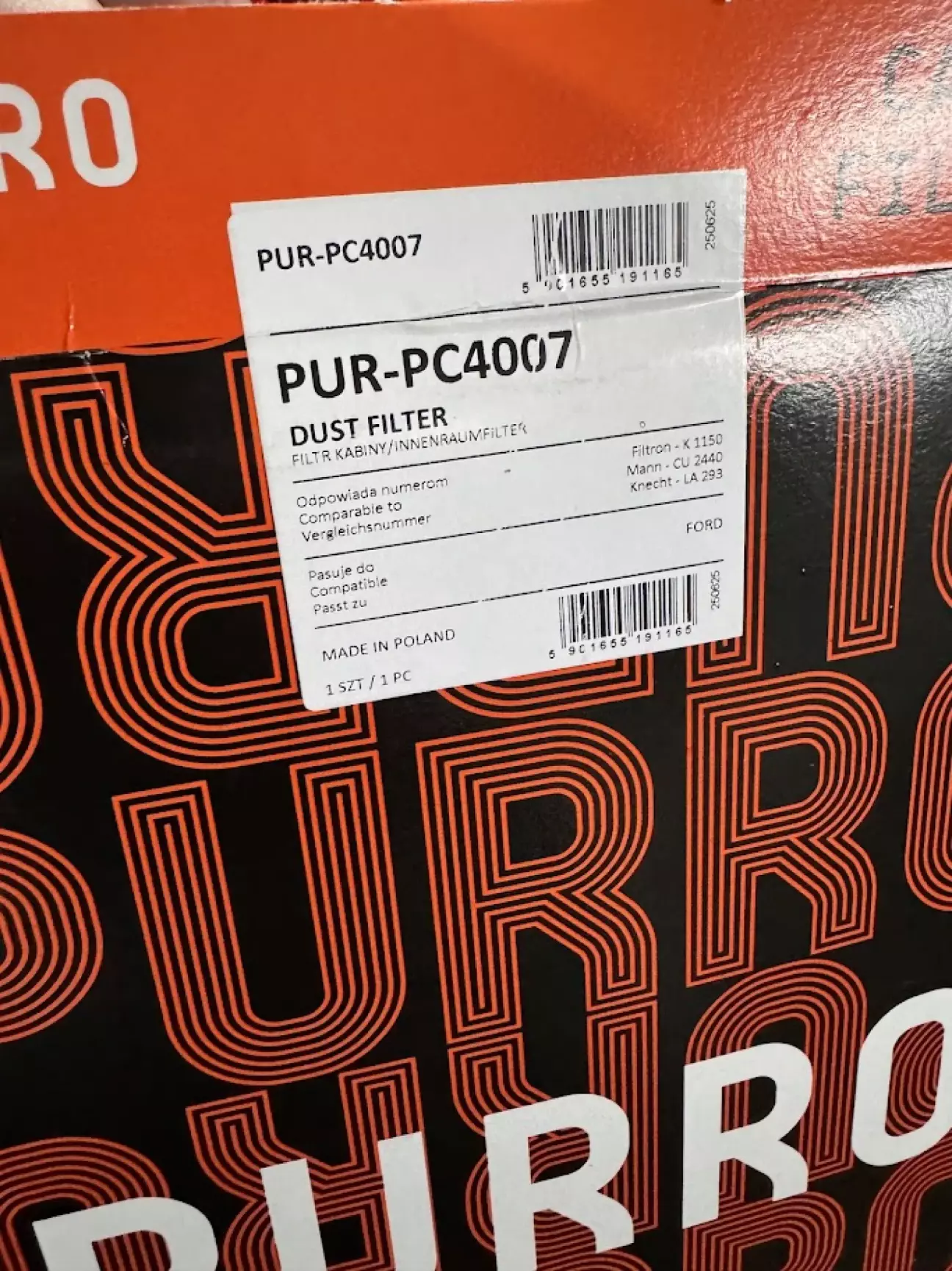 - Фильтр салона обычный (на зиму уголь не беру) - Purro PRU-PC4007