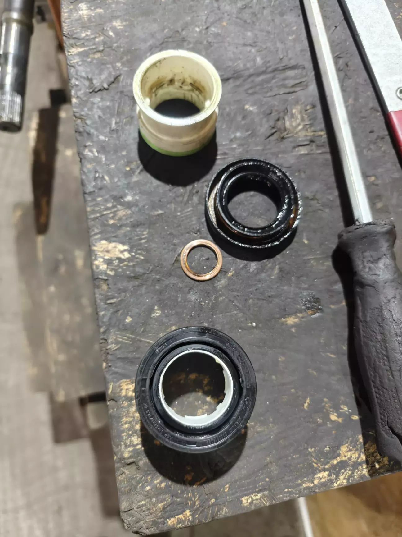 Далі все зачистили, щоб усе було чистенько, встановили новий сальник та поставили напіввісь на місце.