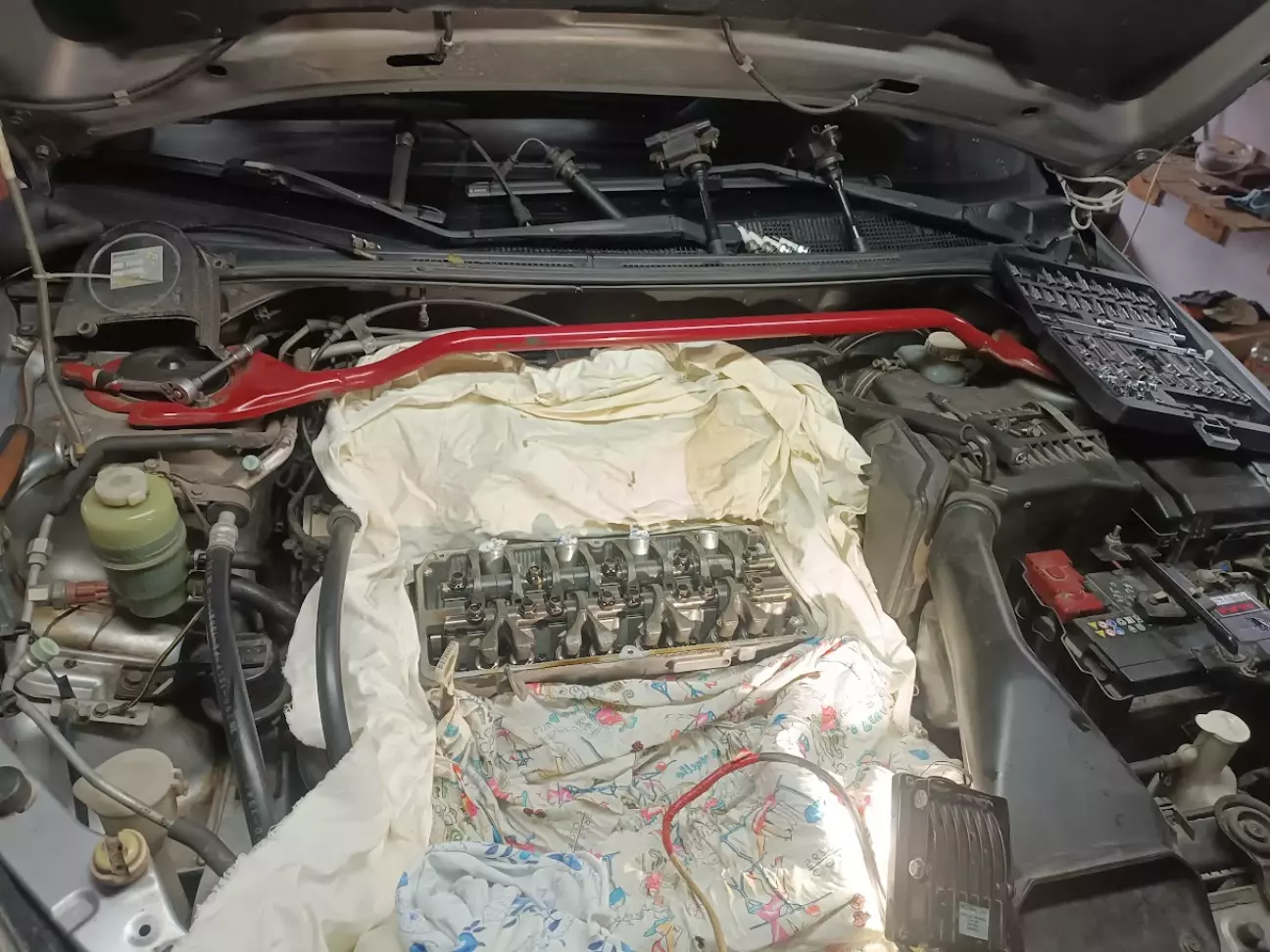 Замінював сальники без зняття ГБЦ. Спочатку 1 та 4 циліндр, потім 2 та 3. Кровушку трохи пили впускні клапана. Точніше процесс розсухарювання-засухарювання. З випускними клапанами все набагато проще. По часу зайняло все з 14 години до 20.