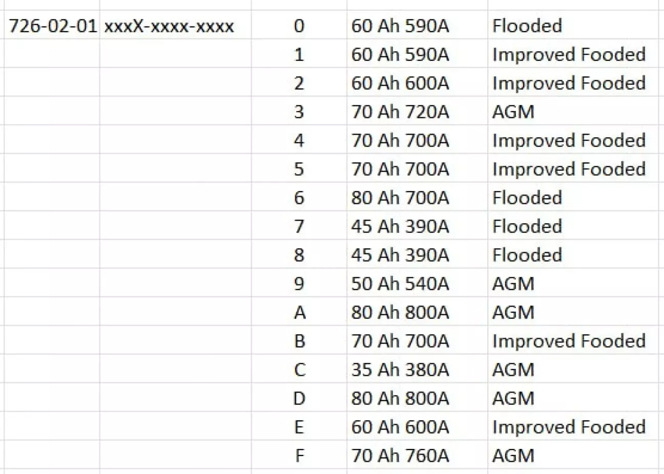 Оскільки у Forscan є неточність у назвах акумуляторів та їхньому фактичному об'ємі, я доповнюю попередній пост повною таблицею значень As-Built для BCM: