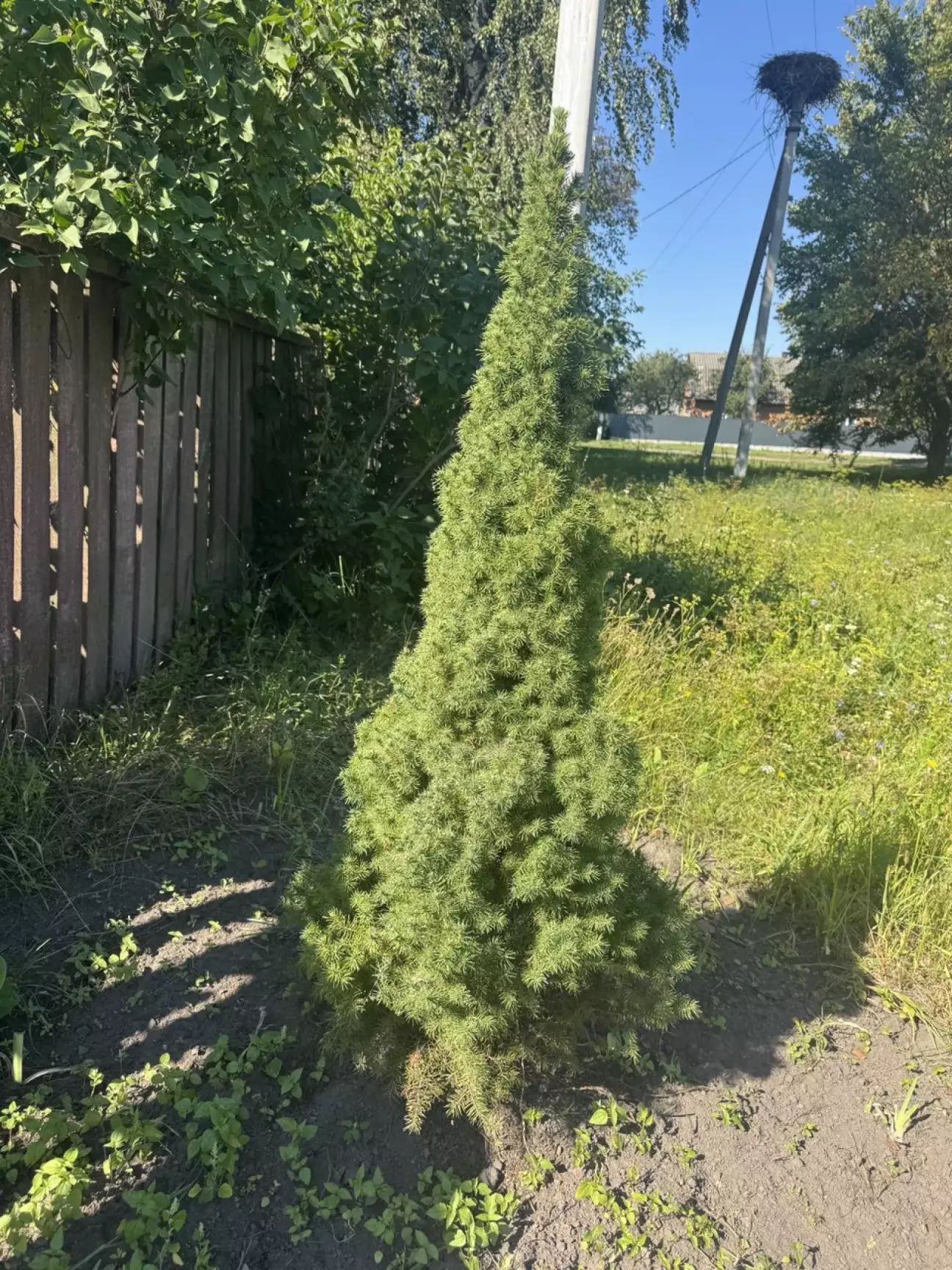 Брат висадив смереку років сім тому, зростом вона була сантиметрів 10, цьогоріч обігнала мене. Схоже, їй на наших чорноземах сподобалося.