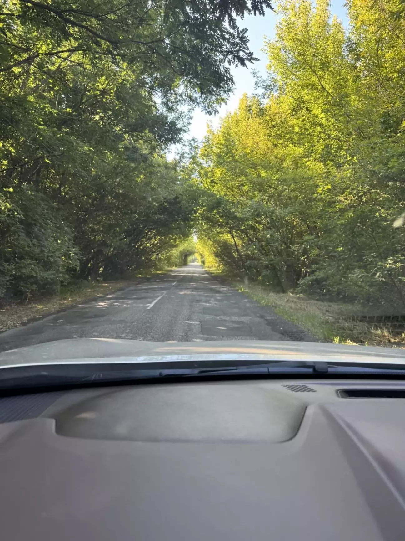 Їдемо в село до батьків, клен ясеновидний і акація, зробили зелений тунель над дорогою. Ця дорога мала бути перебувована в 2022, але так і лишилася, дерева наступають.