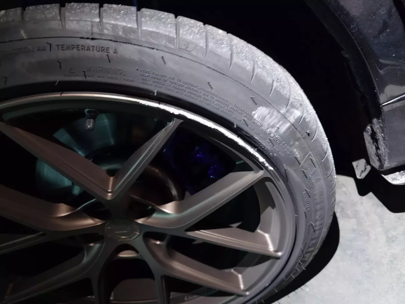 Задні 275мм шини, які об'єктивно трішки завузькі для 10" диску, не дають йому ніякого захисту. Чую звук притертості і відразу розумію, що день уже не задався. Вийшов оцінити, наскільки там усе погано.