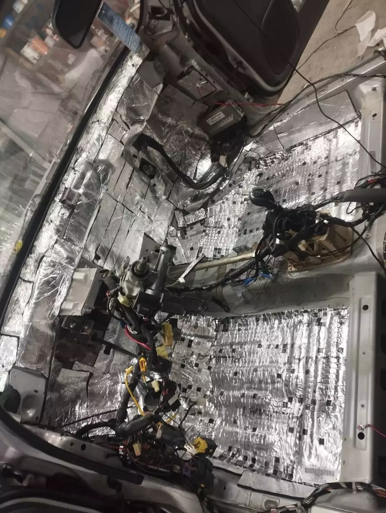 Далее встал вопрос шумки, думал только моторный щит, но уже при вскрытии выяснилось, что нужно поднимать заводскую шумку и с пола. Или вибру, не знаю что там. На щит положили шумку, на пол вибру. Эффект заметно лучше стал.