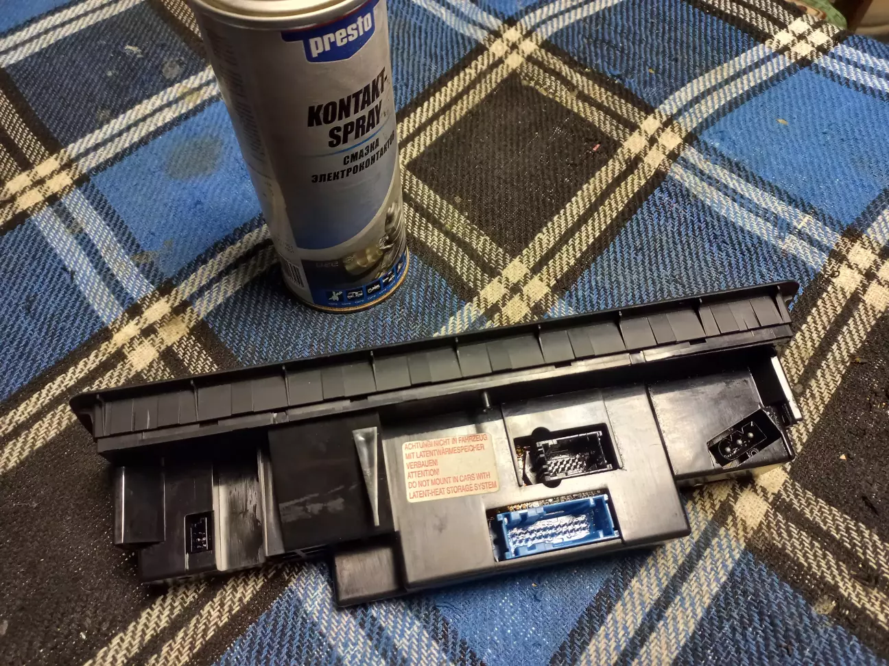 На платі блоку клімату встановлений маленький вентилятор, який забирає повітря із салону для більш точної роботи датчика температури клімат-контролю. Відповідно, він затягує і пил із салону, і з часом починає шуміти. Декілька років тому я його вже чистив, але він знову став доволі гучно шуміти. Дійсно, дуже гучно, бо навіть пасажири питали, що це так "жужить" )