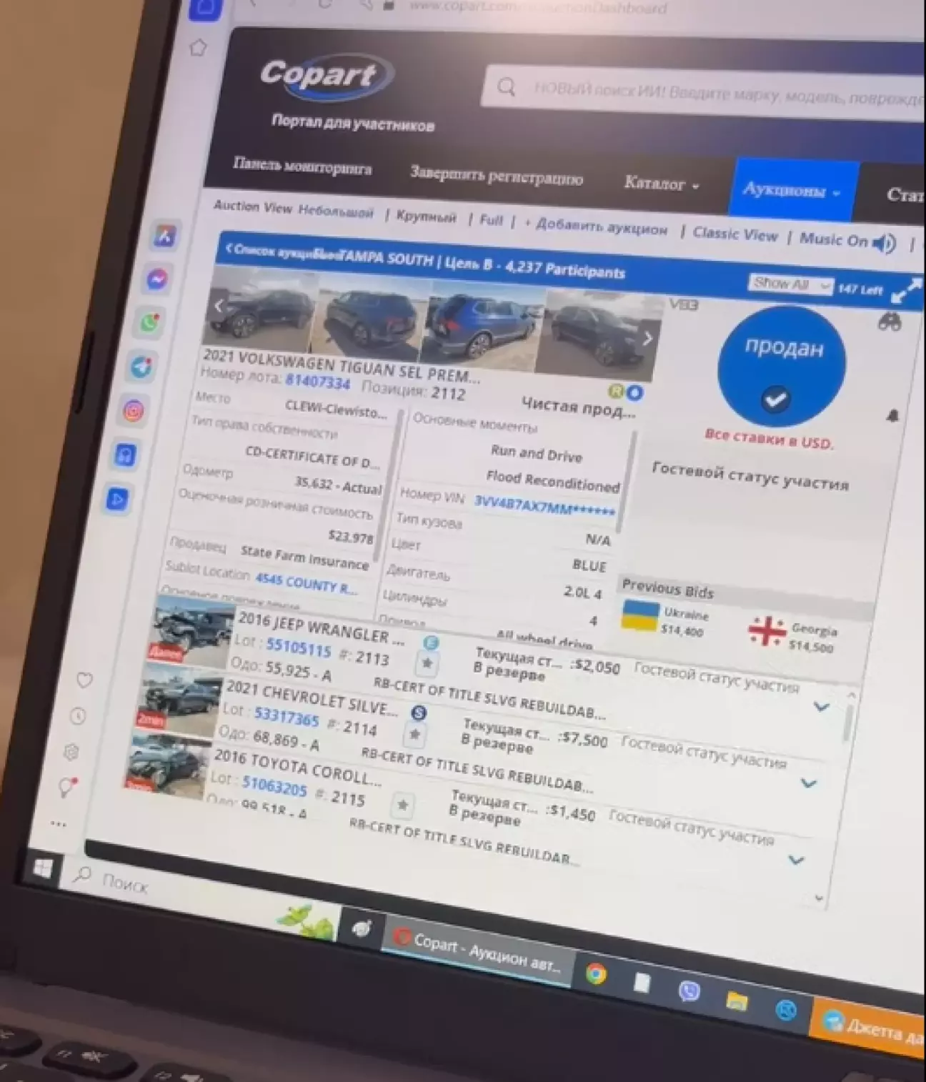 Давно мріяв змінити авто саме на Тігуан, в комплектації SE та бажано в Р-лайні, почав обирати самостійно підходяще авто🚙 (торгувати через знайомого👤) ще з початку 2025го року, щоб пошкодження були не критичні🛠, перед кожними торгами на кожен лот купував Карфакс. З часом, вдавалось назбирати більше грошей щоб розглядати SEL комплектації 🔝, тому я не дуже розчаровувався з приводу невдач на торгах, але були і дуже хороші варіанти😬 (загалом програв 9 лотів😬😬😬). І тут з'явився в квітні варіант, який я і не думав розглядати, так як пошкодження - затоплення💧💧💧, але уважно все переглянувши - мені здалось дуже підозрілим , що по авто немає жодної помилки🆗🆗🆗, заводиться і їде🆗, салон без слідів води🆗 окрім заднього правого пасажира🗿🗿🗿.