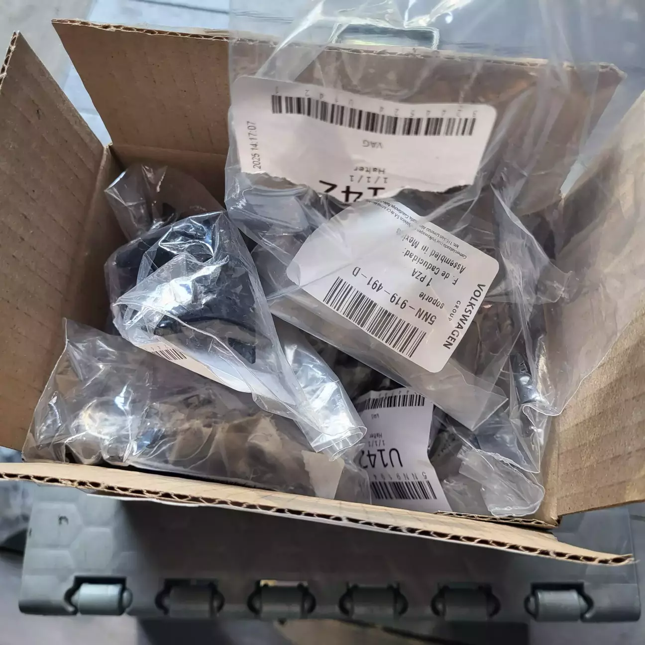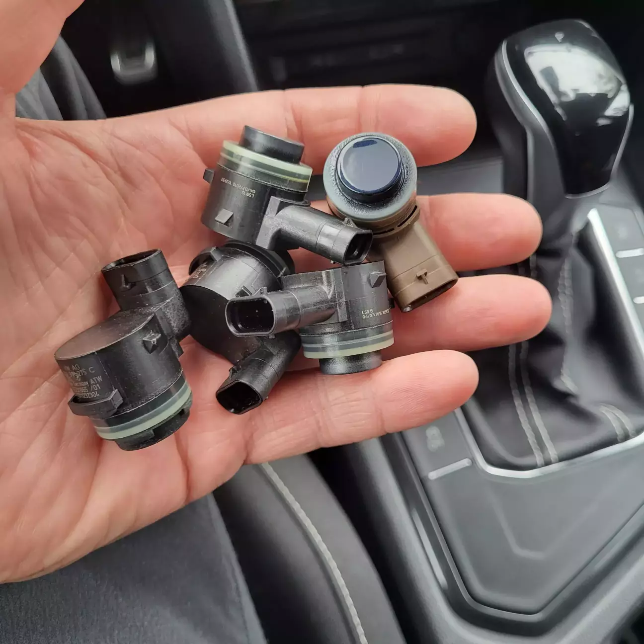 Коли прийшла проводка та кронштейни почав шукати самі датчики парктроніка. Для блока 5Q вони теж повинні починатися з 5Q. Серед всіх 12ти датчиків три різних парт номера. А саме 5Q0919275C це в передній бампер 4ри штуки (вони такі Г - образні), 5Q0919275B це на весь задній бампер тобто 6ть штук та 5Q0919297B це в передній бампер бокові яки потрібні для PLA ( коричньго кольору вони ) їх потрібно 2шт.