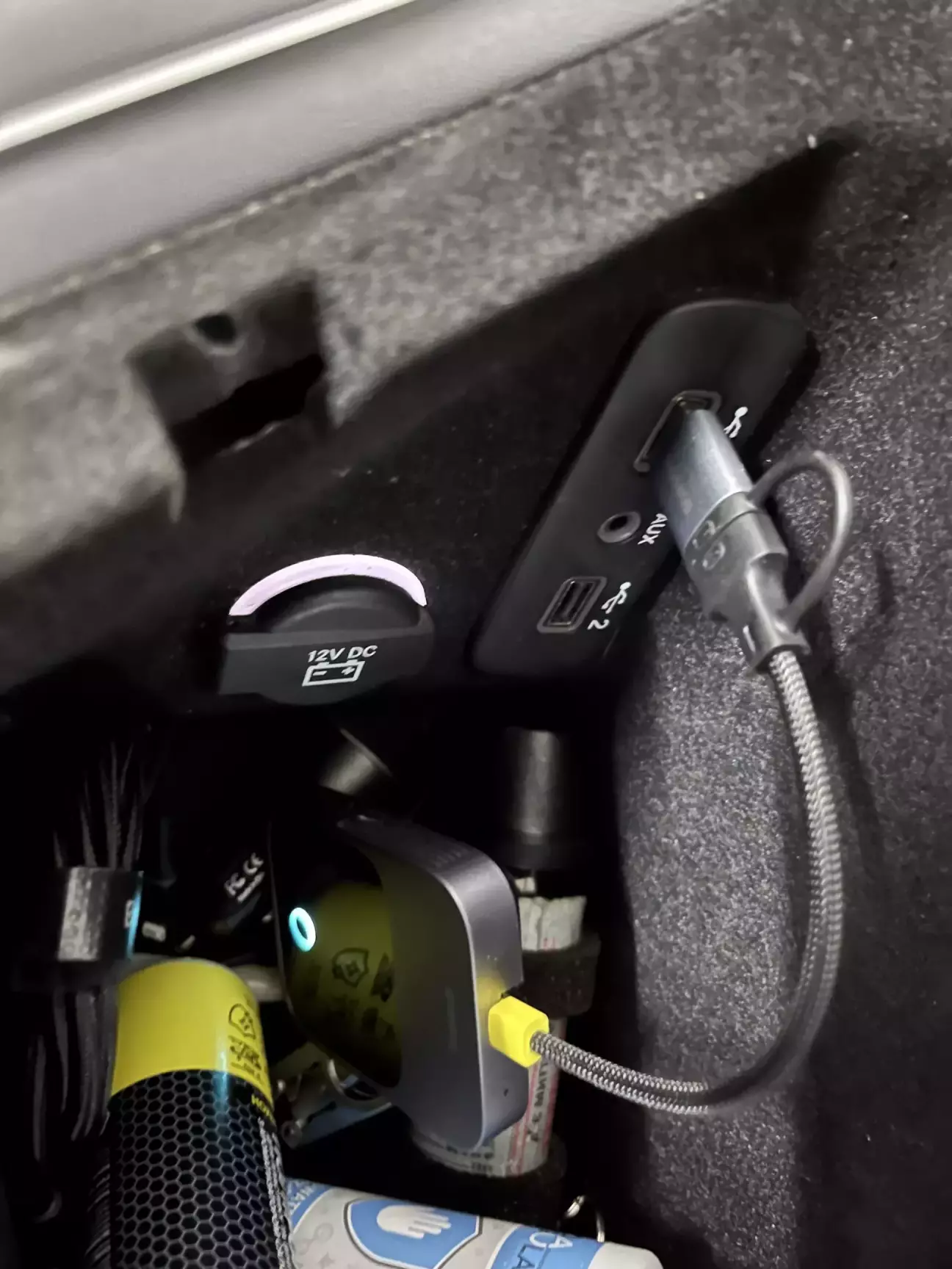 Цей дівайс знаходиться у підлокітнику - на очі у авто не потрапляє. Все працює дуже добре.