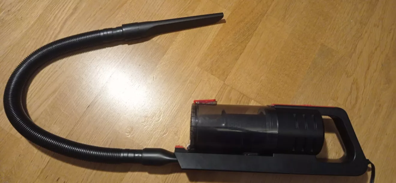 Давно його вже маю, але тільки зараз додумався написати про нього. Підключається до прикурювача, має довгий провід, всмоктує дуже добре, має кілька насадок, проникає у всі щілини, необхідна річ у машині.