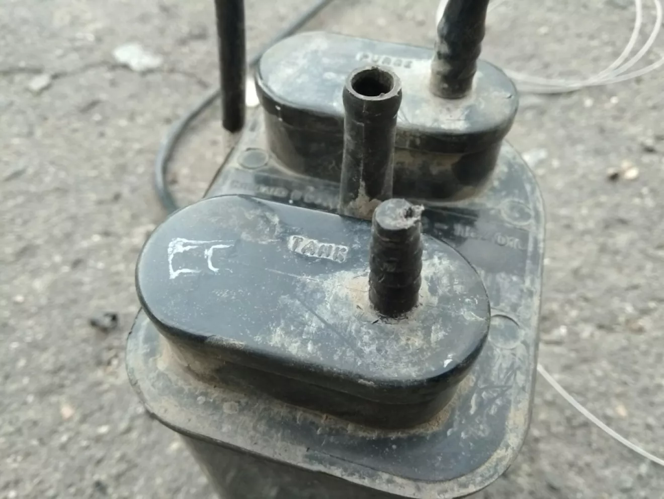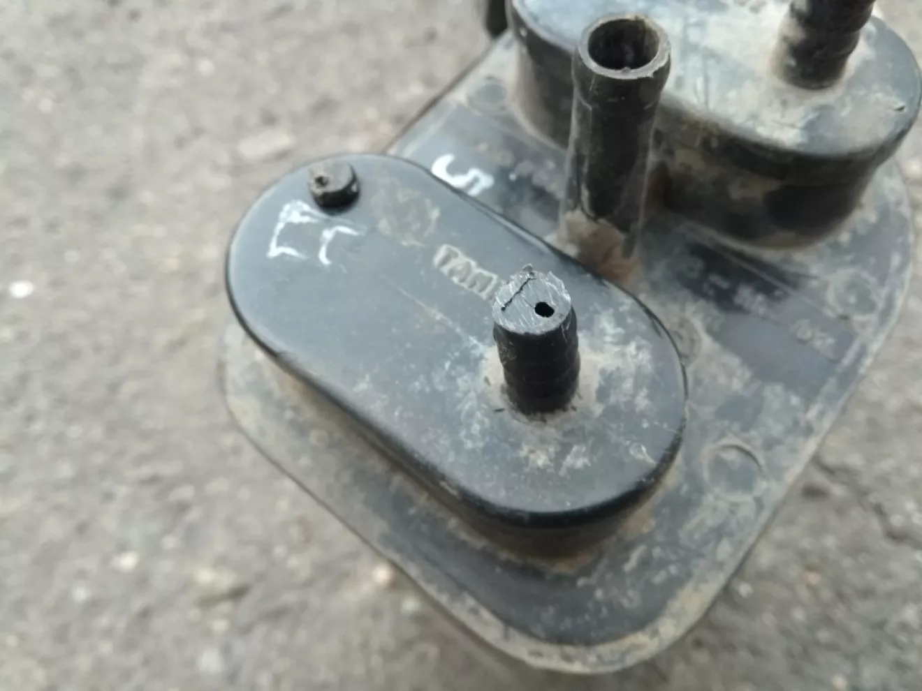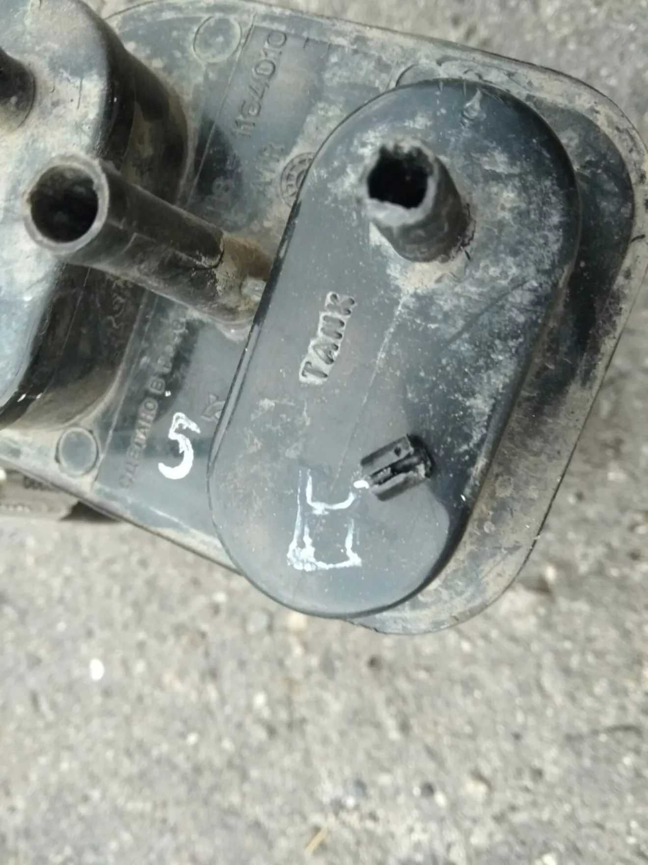 Ура! Победа! Решено! Наконец-то это случилось. Очень интересная история. Долго я боролся с "ПШИКОМ " из бака, есть записи в журнале. На этот раз решил дойти до адсорбера, трубка шедшая к нему от сепаратора не продувалась ни ртом ни насосом, была даже попытка проволокой пробить -но все без успешно. Доставал адсорбер сам, без полного снятия бака, за часа 3 справился. Достав хотел уже его разбить из злости, но покрутив в руках услышал как внутри пересыпается уголь и тут я начал догадываться. Отрезав трубку у штуцера с надписью TANK я увидел это … Полностью запаянный штуцер! Заводской брак? Получается что система ни разу с завода (2006г.) не работала, пока я до неё не дошел. Срезав пару слоев пластмассы и разковыряв отверстие, стал думать чем заменить трубку, ведь пластмассовой не найти да и не запрессовать. Купил трубку ПВХ, синюю, прозрачную, других не было . Установка тоже не из лёгких. Вот так, кто бы мог подумать)
