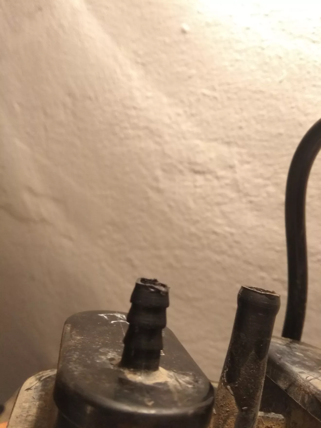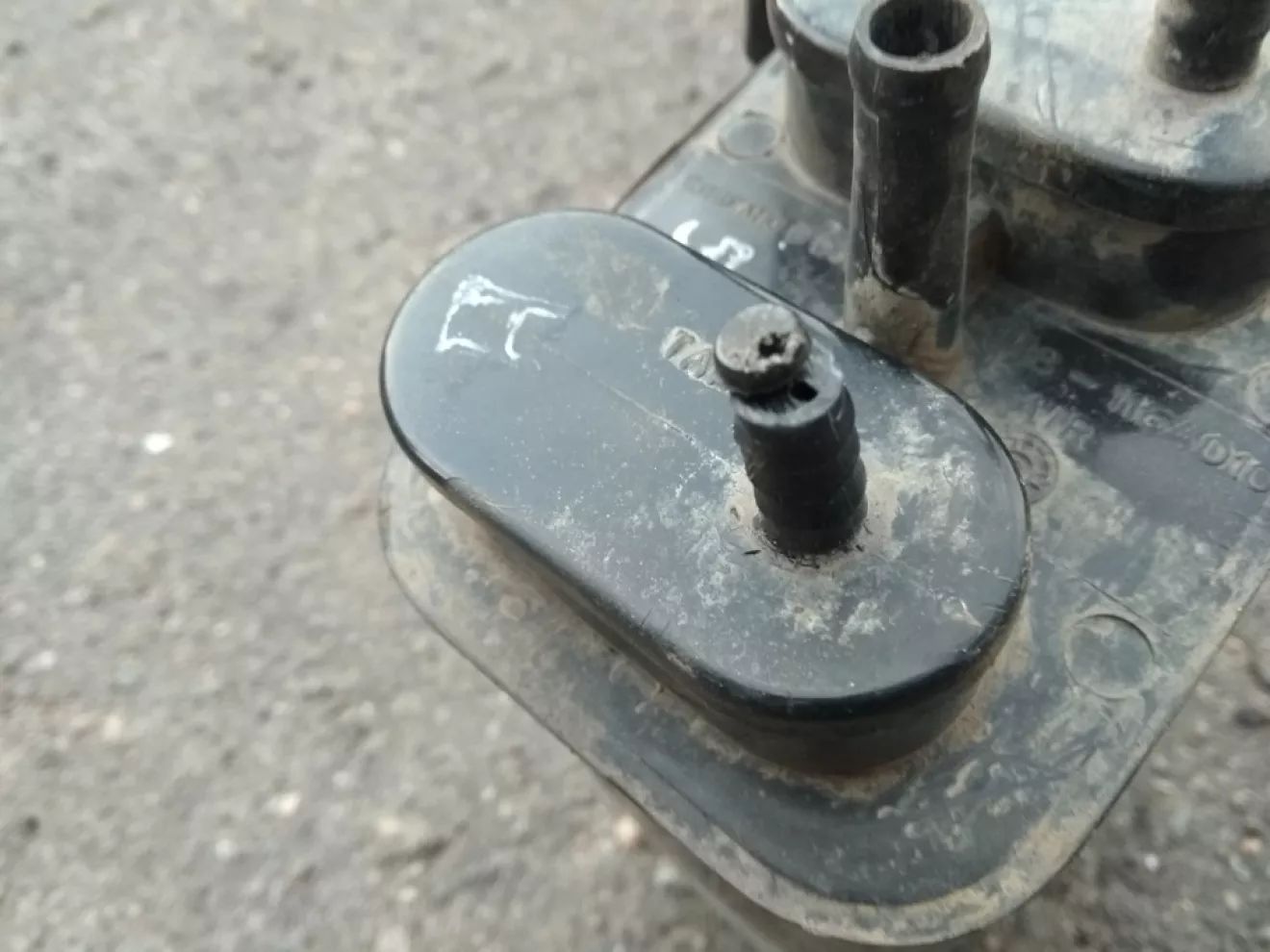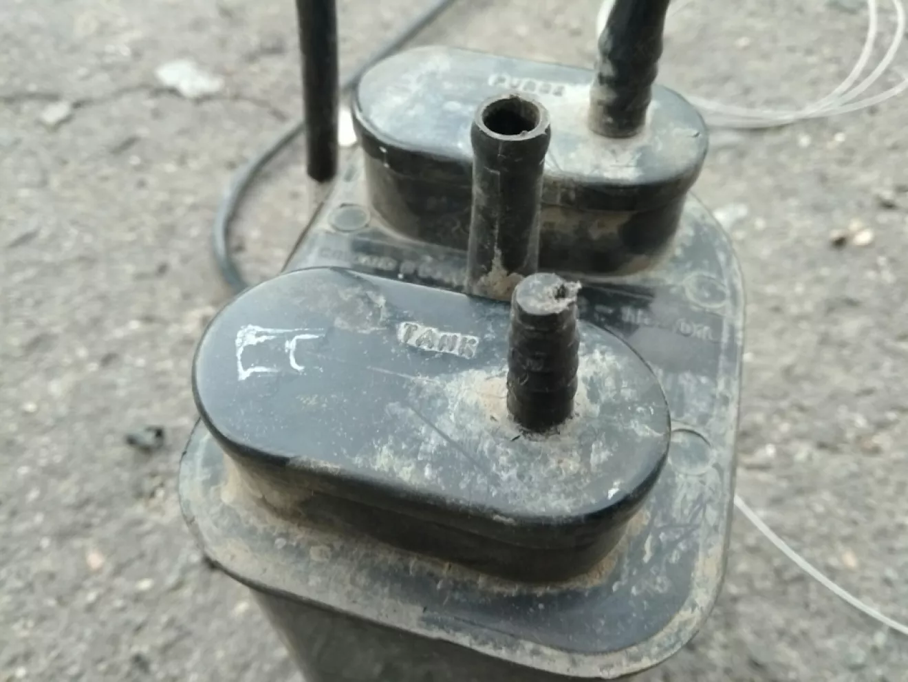 Ура! Победа! Решено! Наконец-то это случилось. Очень интересная история. Долго я боролся с "ПШИКОМ " из бака, есть записи в журнале. На этот раз решил дойти до адсорбера, трубка шедшая к нему от сепаратора не продувалась ни ртом ни насосом, была даже попытка проволокой пробить -но все без успешно. Доставал адсорбер сам, без полного снятия бака, за часа 3 справился. Достав хотел уже его разбить из злости, но покрутив в руках услышал как внутри пересыпается уголь и тут я начал догадываться. Отрезав трубку у штуцера с надписью TANK я увидел это … Полностью запаянный штуцер! Заводской брак? Получается что система ни разу с завода (2006г.) не работала, пока я до неё не дошел. Срезав пару слоев пластмассы и разковыряв отверстие, стал думать чем заменить трубку, ведь пластмассовой не найти да и не запрессовать. Купил трубку ПВХ, синюю, прозрачную, других не было . Установка тоже не из лёгких. Вот так, кто бы мог подумать)