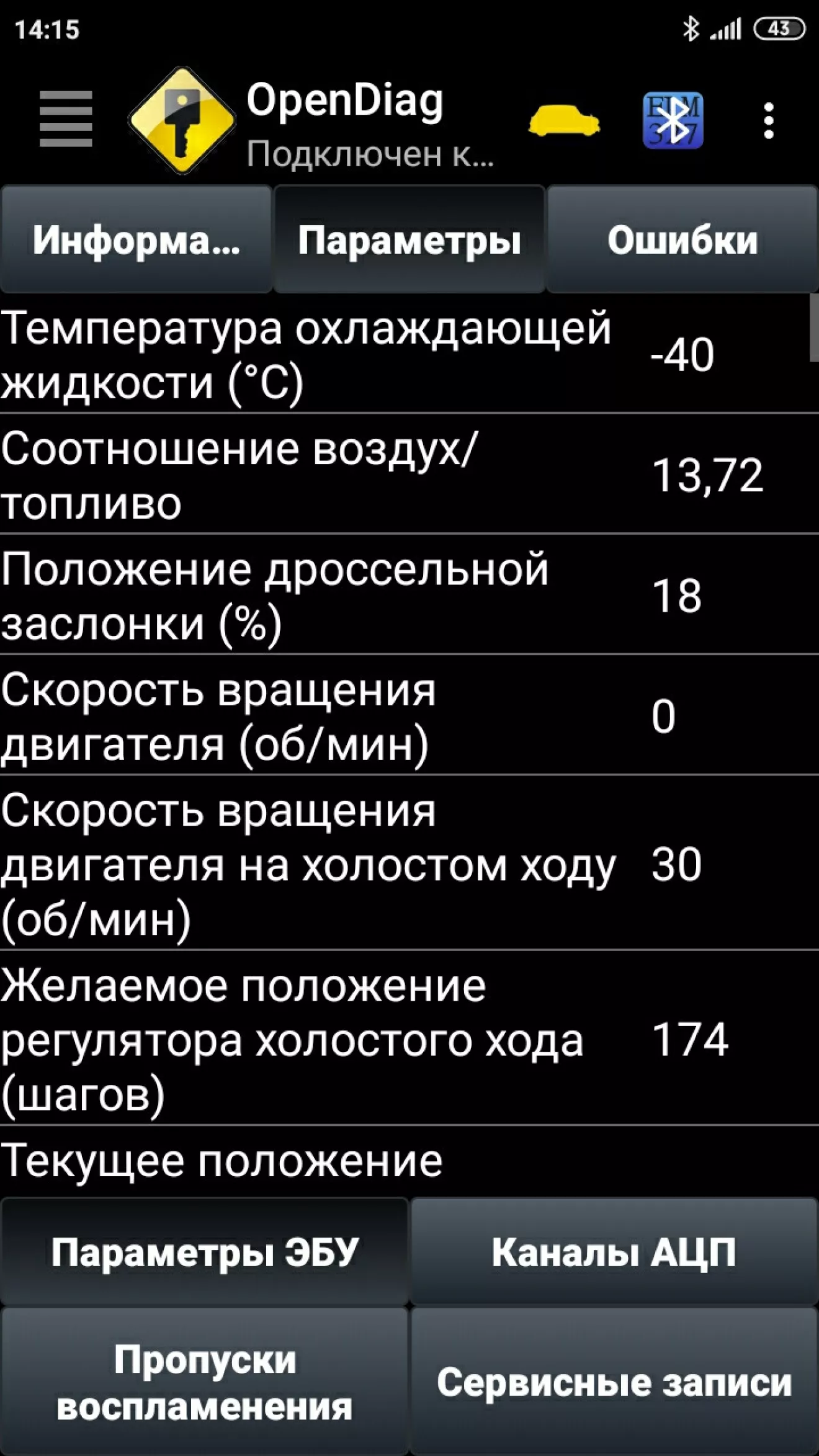 При диагностике elm 327 версии 1,5 очень странные показатели начал выдавать, например : гуляет % холостого хода туда сюда, гуляет положения регулятора холостого хода, хотя стрелка стоит ровно, гуляет напряжение бортовой сети ( 9- 14), при подгазовке растет, хотя вольтметр показывает стабильную норму, холостые показывает 30 хотя на прибрке как положено примерно 850, температуру охлаждающей показывает -40 на приборке где-то 90, показывает скорость хоть я стою на месте. Вопрос это глюк сканера или мой?