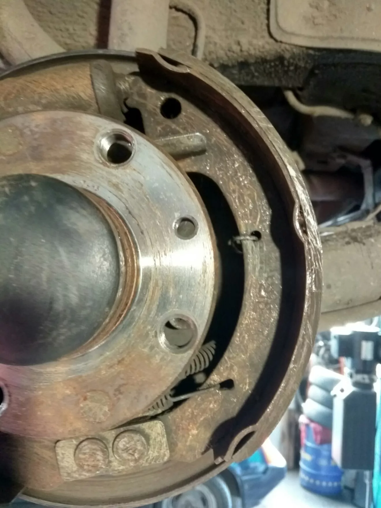 Сняв тормозной барабан было обнаружено почти новые колодки, лишь из за грязи образовались канавки. Мастер зачистил надфилем тормозную поверхность колодок и натянул ручник.