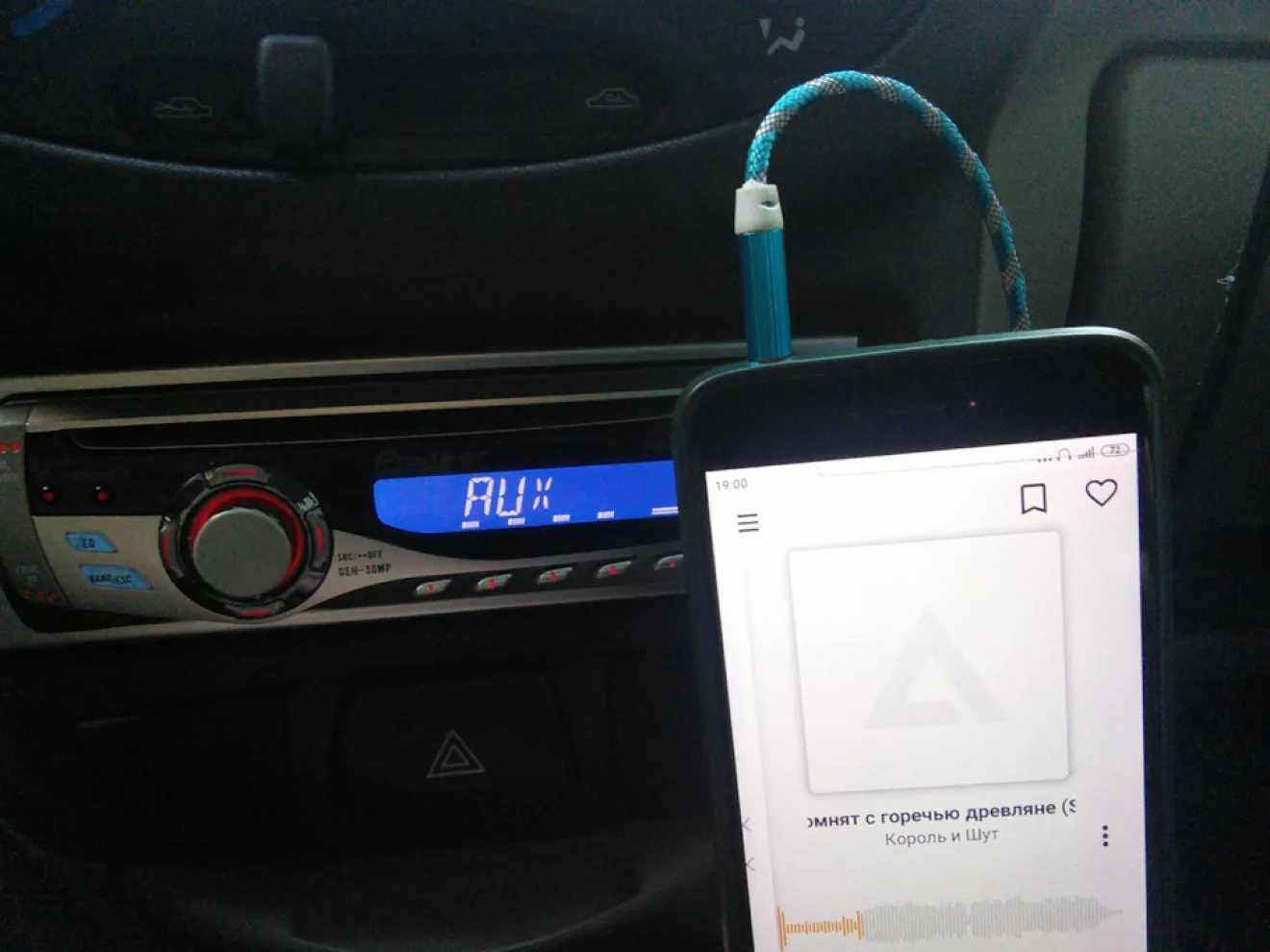 ать левую нижнюю кнопку и пролистать до режима aux и включить его. Теперь можно подключать что угодно). Все, вот так просто, можно сказать случайным образом, мне удалось усовершенствовать автомагнитолу.