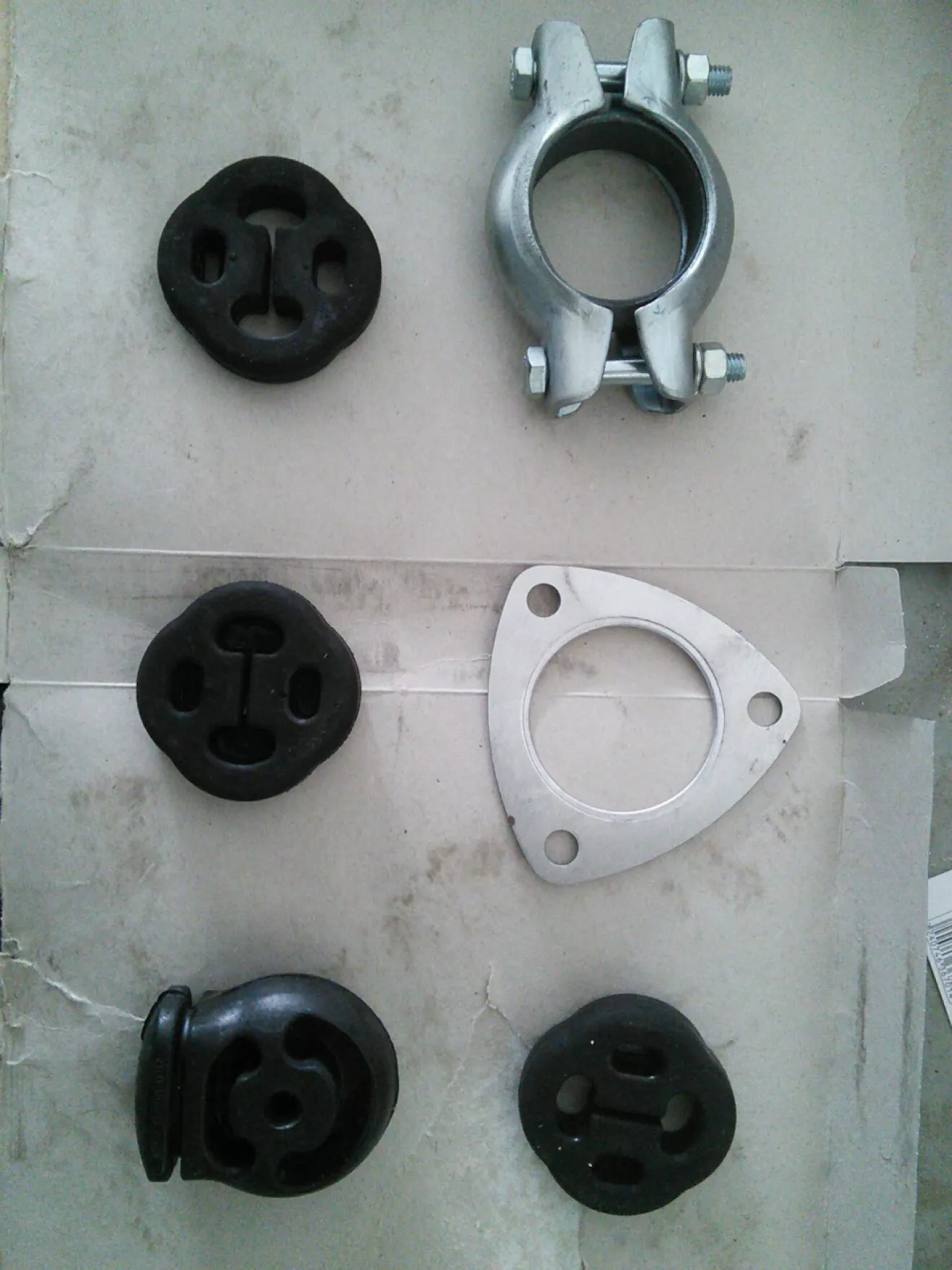 Купил подушки глушителя и резонатора вместе с проставкой, железный хомут оказался плохим, не обжимал да и кольцо тоньше родного — оставил заводской.