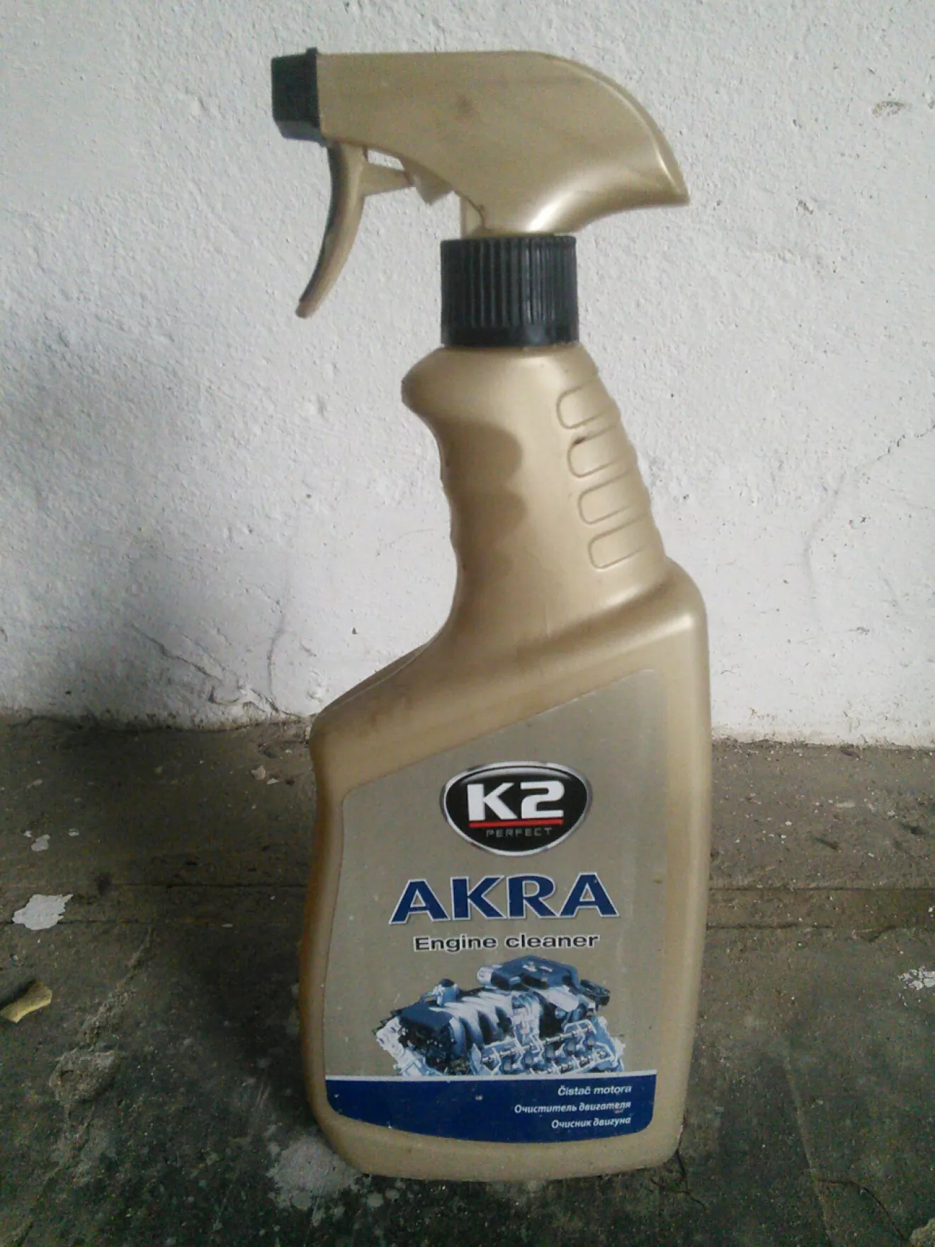 Очищает сразу при нанесении, старые засохшие пятна и в труднодоступных местах пришлось зубной щеткой пройтись, смывал пульверизатором, закрывал тодько генератор. Результат отличный. Поздно вспомнил поэтому без фото(