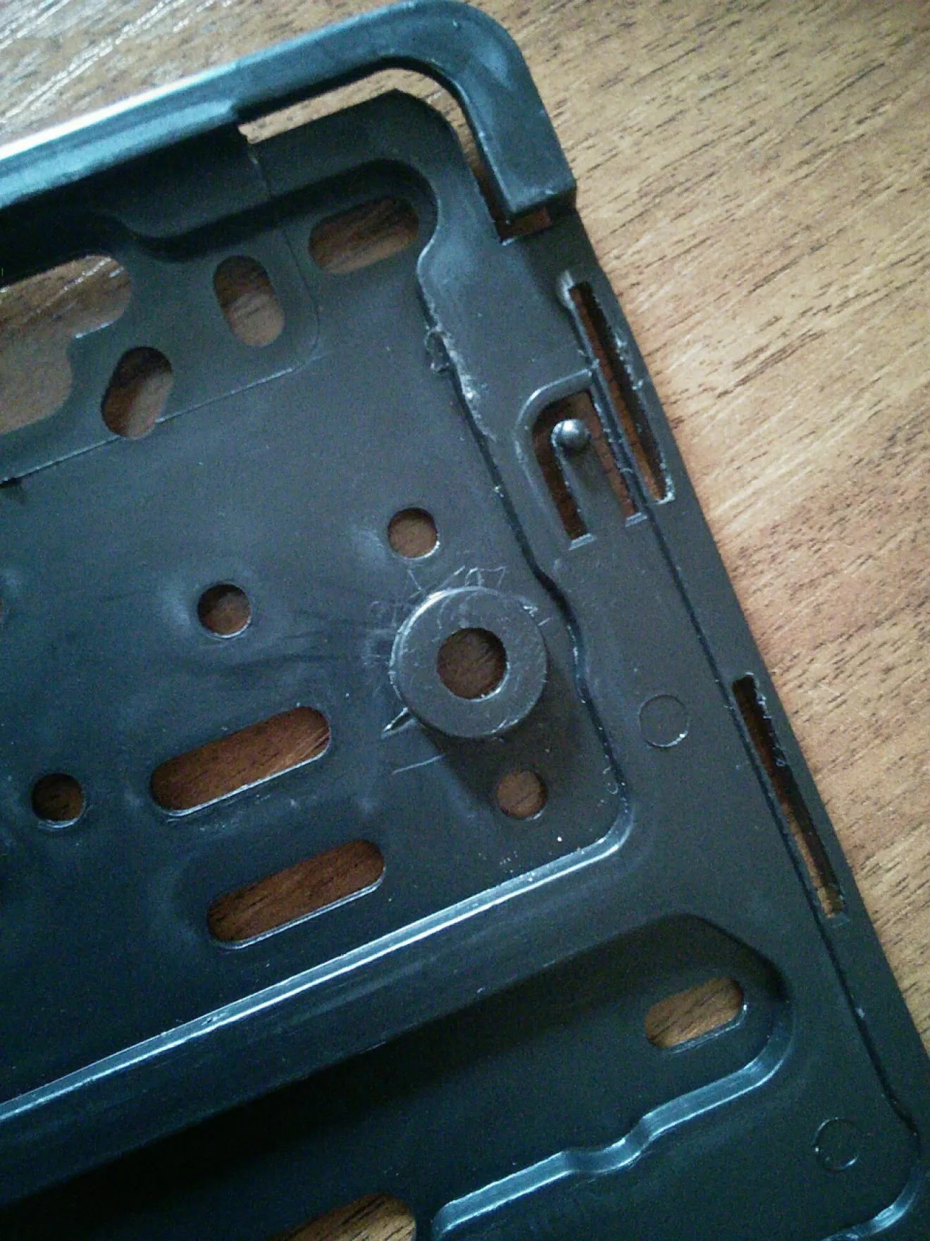 После постановки на учёт решил номера ставить, через рамку. До меня стояли на болтах сквозь номера, не хотел их дырявить, купил две рамки. Установив рамки на место номерные знаки не вставлялись, мешали шляпки болтов пришлось срезать немного крепление рамок и шлифануть болты. Все зашло и вид лучше стал)
