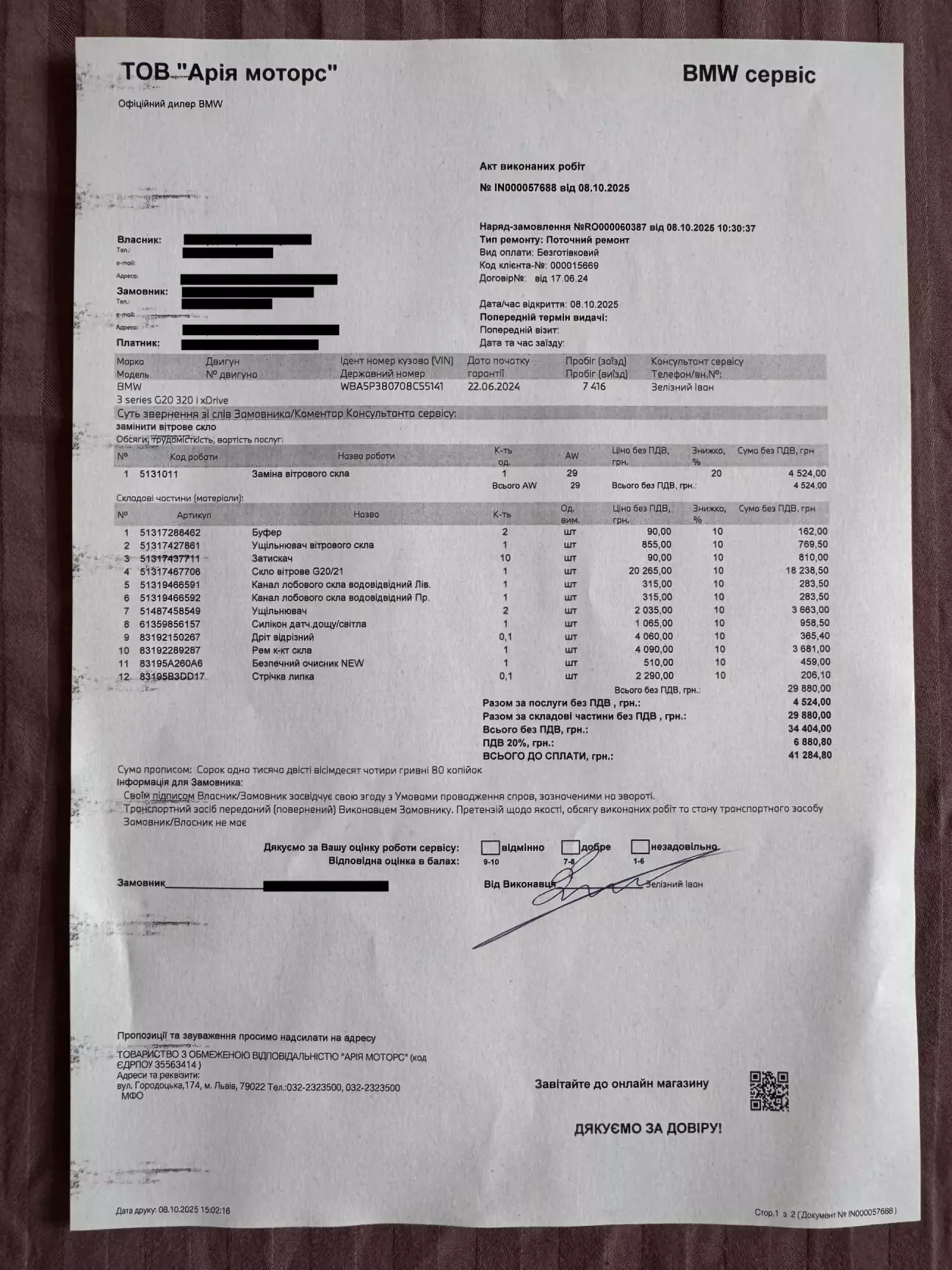 Оскільки автомобіль на гарантії, то заміну робили в дилера ("Арія Моторс" у Львові). Перед цим ще познайомився з одним майстром, який там працює. Звати його Владислав. Якщо вам треба виконати кузовні роботи по автомобілю, і ви перфекціоніст з ОКР, то вам тільки до нього! ДУЖЕ РЕКОМЕНДУЮ! Ця людина виконує свою роботу просто бездоганно.