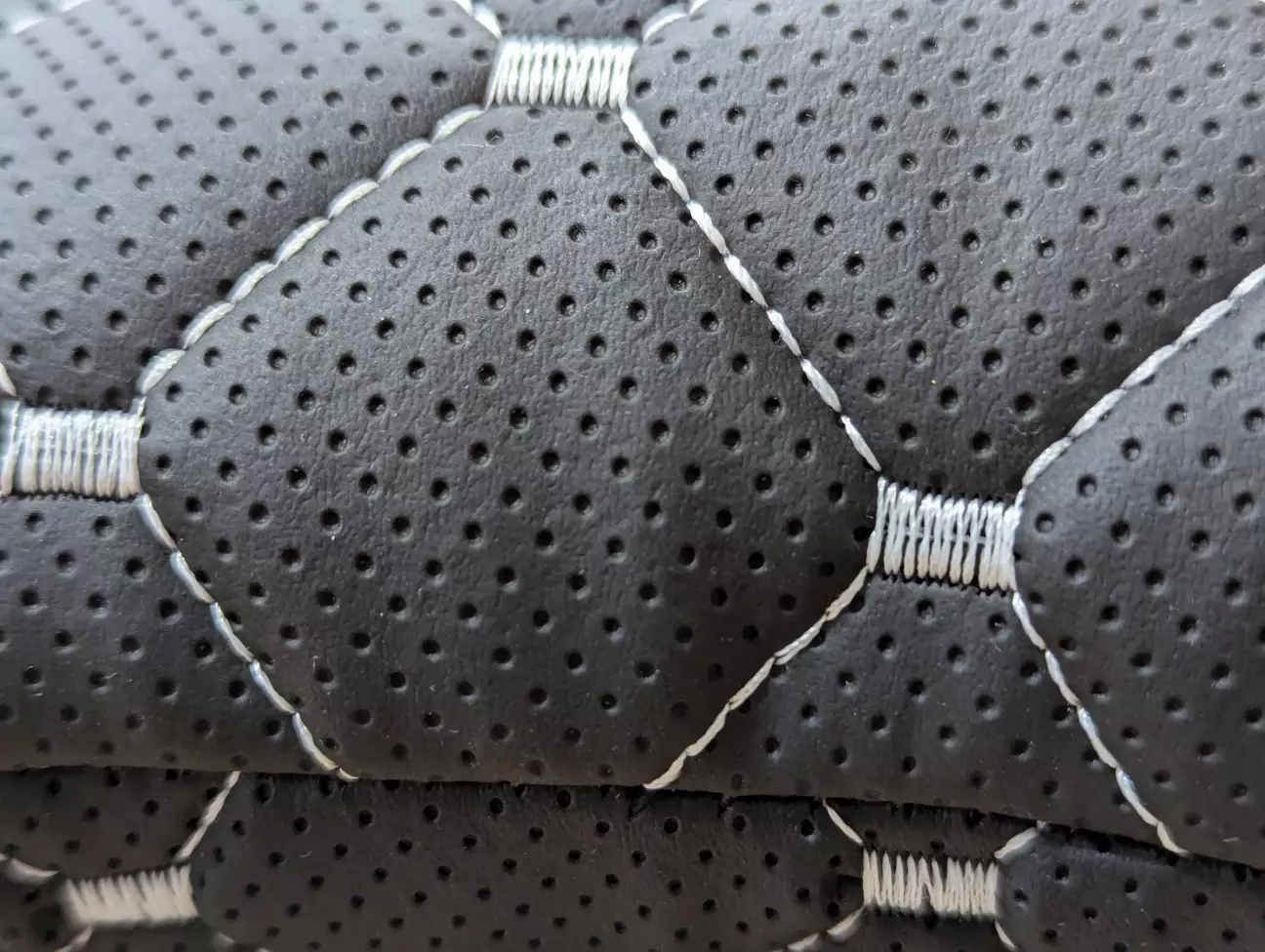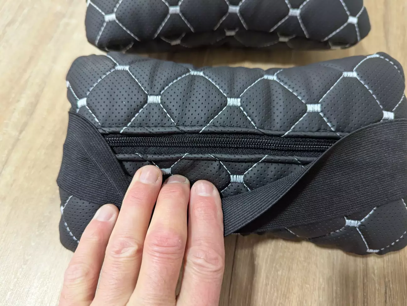 Широка резинка — значить, не розтягнеться швидко з часом. Перфорація на шкірі не дасть подушкам «запотівати» від шиї водія.🔥💧